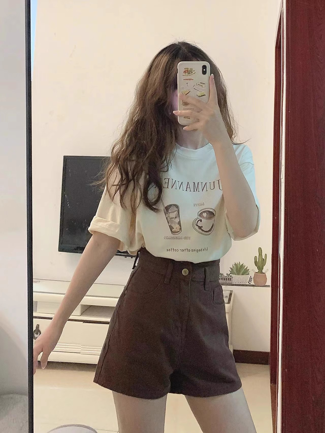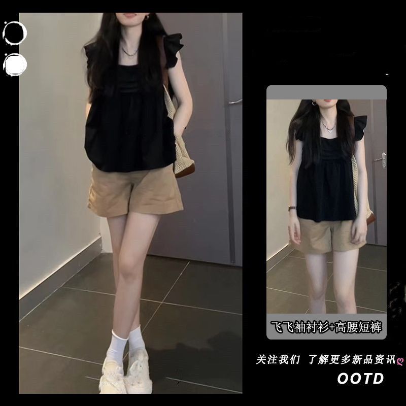 | nameOriginal | Simple Casual All-match Shirt suit Women's Early Summer New Arrival High Waist Shorts Slim-fit Flying Sleeve Top |