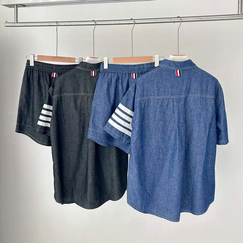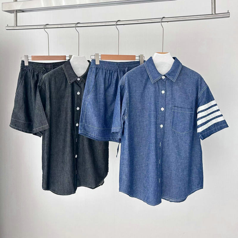 | nameOriginal | Simple Casual Denim suit Spring and Summer New TB Four-bar Academic Style Denim Short-sleeved Jacket with Stretch Waist Shorts |
