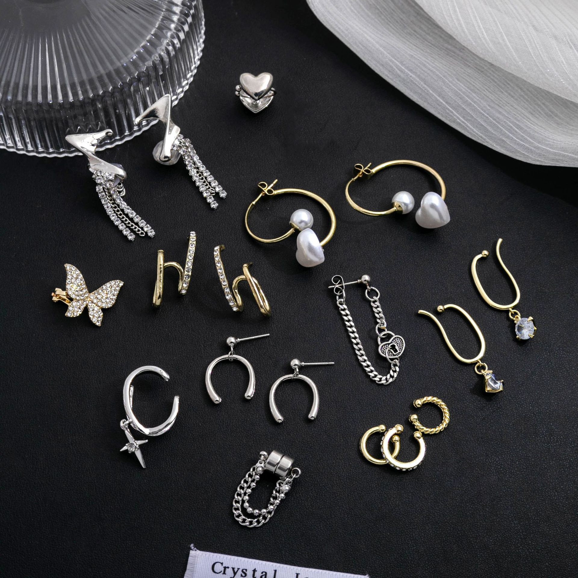 | nameOriginal | Simple cold style geometric diamond-embedded pearl ear bone clip design bow heart-shaped earless earrings earrings for women |