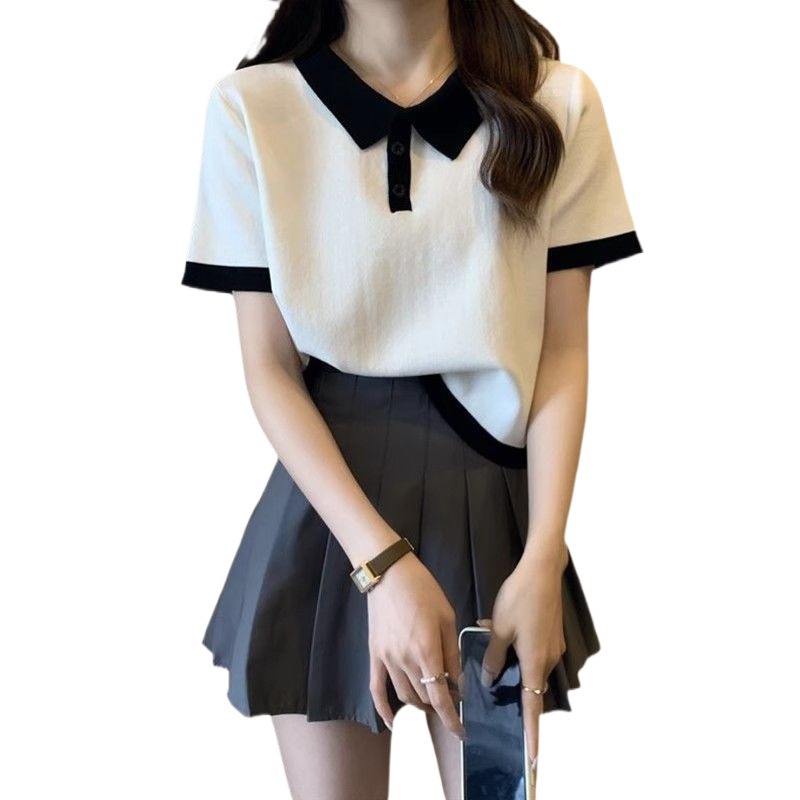 | nameOriginal | Simple Color-inserted Collar Elegant Shirt Women's Summer Loose Slim-fit Chanel Style Korean Style Pure Desire Style Top Short Sleeve |