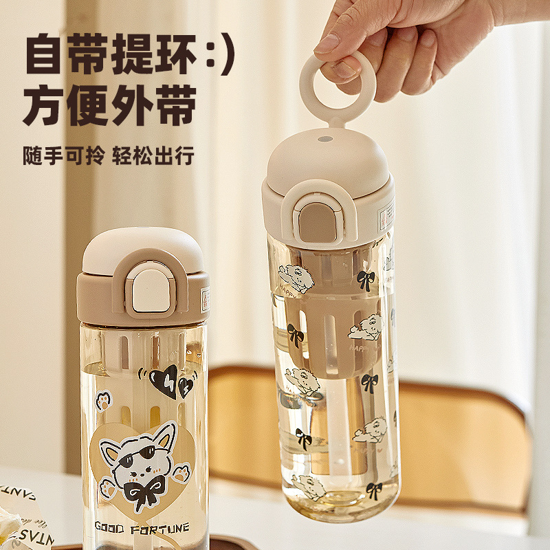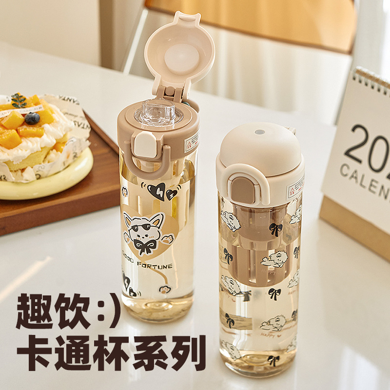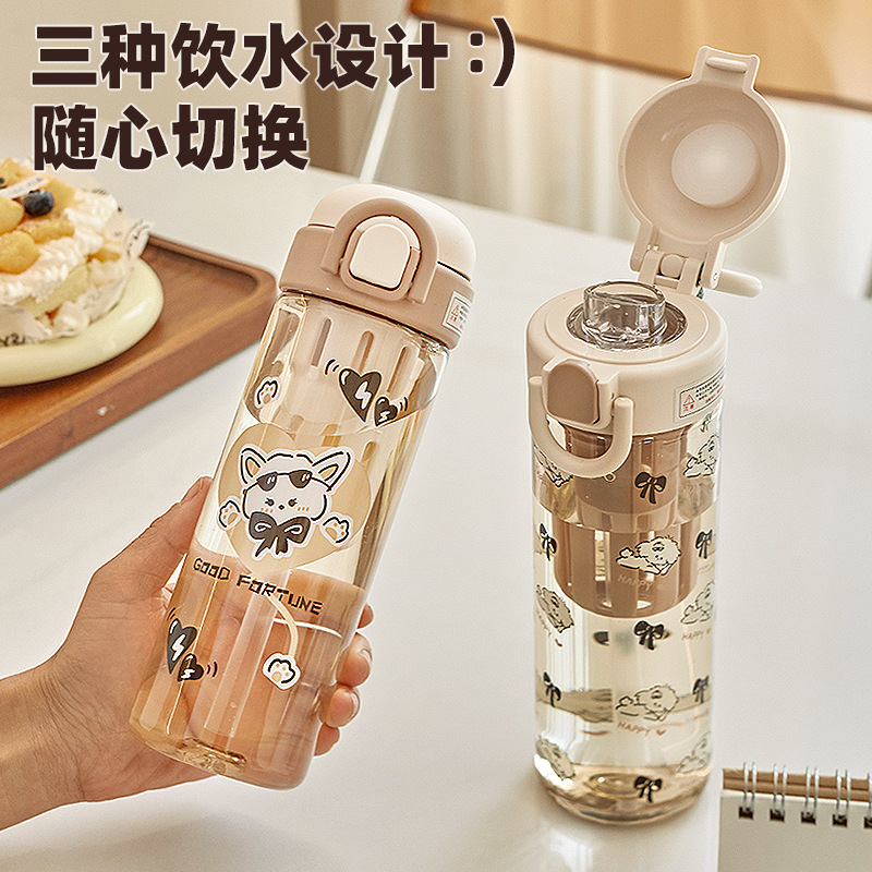 | nameOriginal | Simple Cute Water Cup Student Men's and Women's Plastic Cup with Straw Tea Compartment Portable Double Drinking Cup Summer Use High Color Value  |