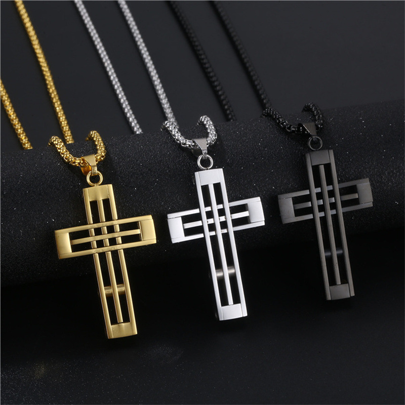 | nameOriginal | Simple Design Mesh Cross Necklace Fashion Stainless Steel Pendant Men European and American High Quality Titanium Steel Necklace |