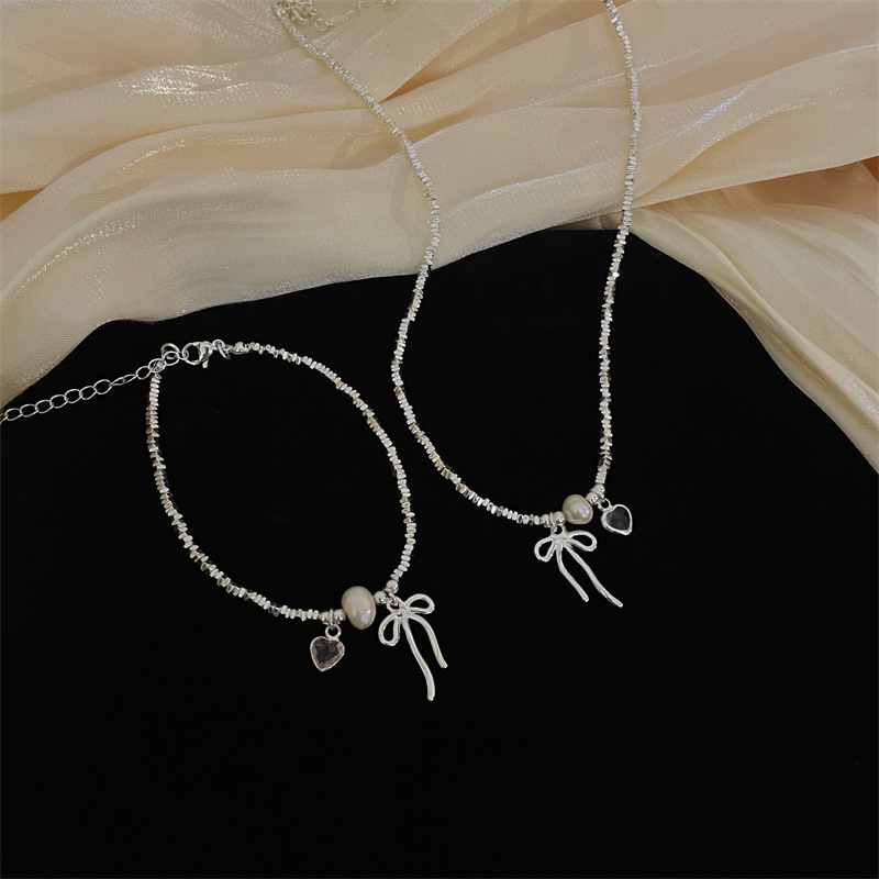 Simple Design Triangle Shattered Silver Bow Collarbone Chain Bracelet Women's Light Luxury Fashion High-end All-match Necklace Trendy