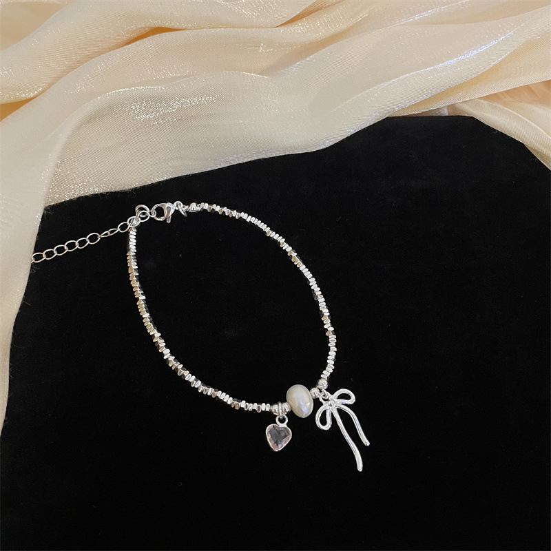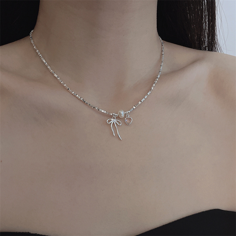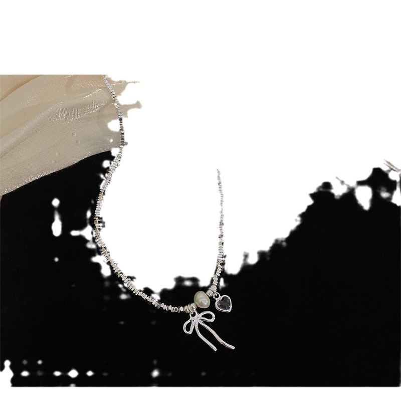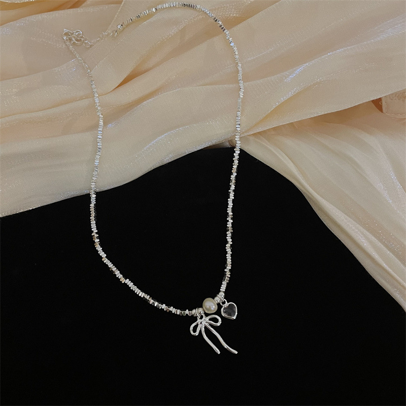 Simple Design Triangle Shattered Silver Bow Collarbone Chain Bracelet Women’s Light Luxury Fashion High-end All-match Necklace Trendy