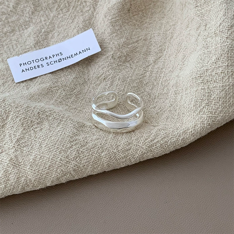 | nameOriginal | Simple double-layered wavy ring for women, versatile and stackable, sweet and cool S925 silver open ring, hip-hop index finger ring, trendy |