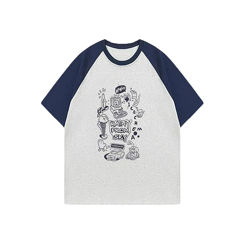 Simple drawing print color matching casual versatile short-sleeved T-shirt