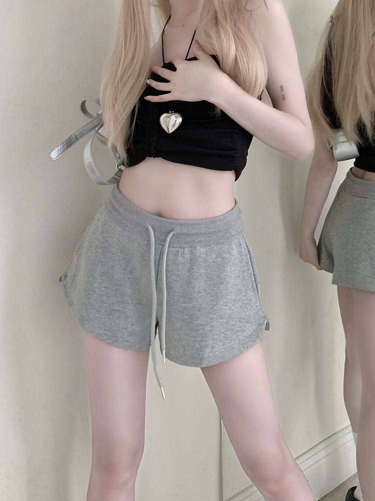 | nameOriginal | Simple drawstring loose slimming high waist casual shorts |