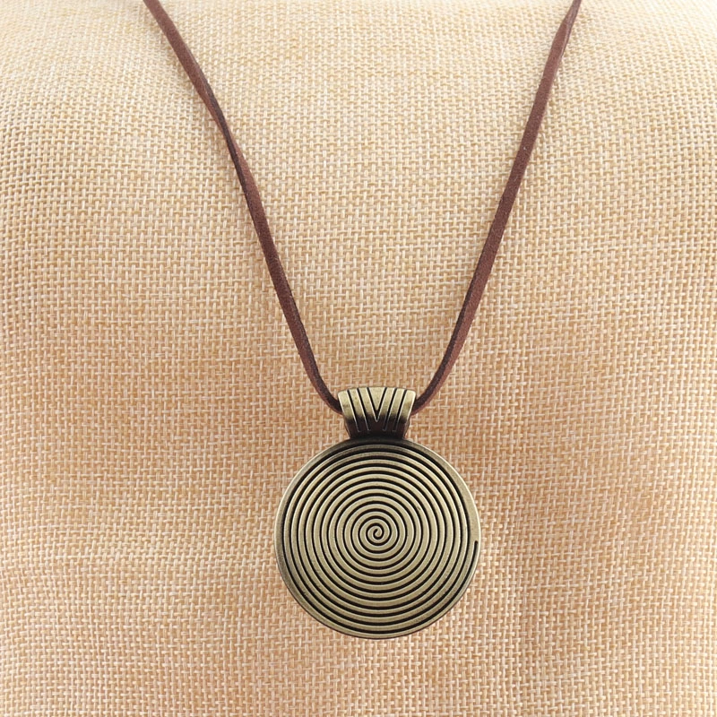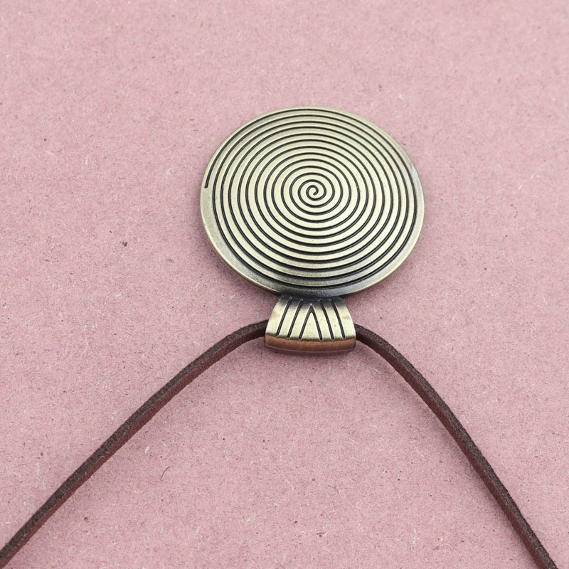 Simple ethnic style pendant accessories, forest-style long necklace with retro circular pattern, sweater chain, elegant and versatile