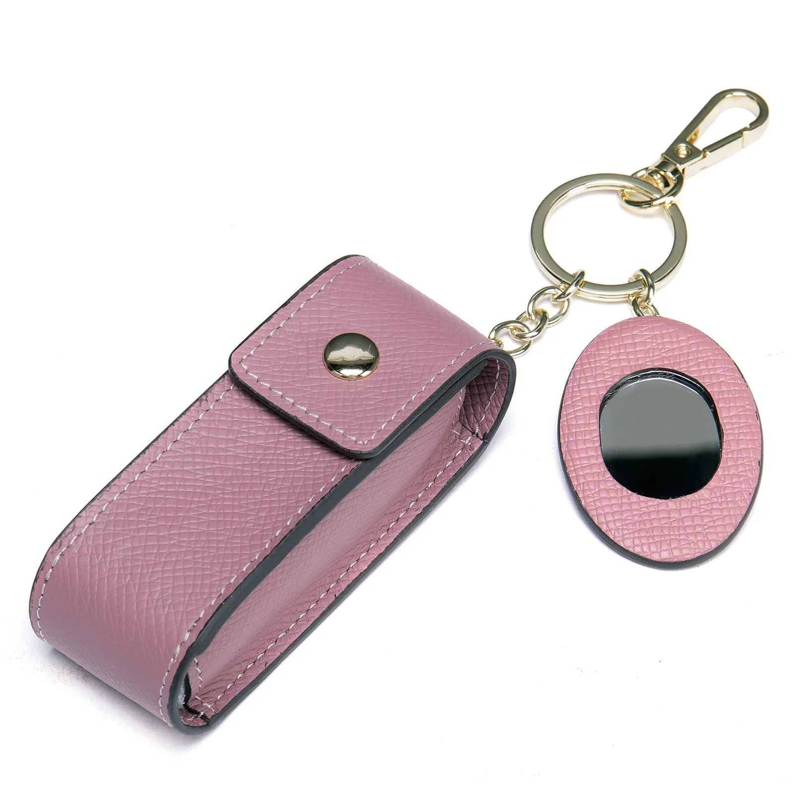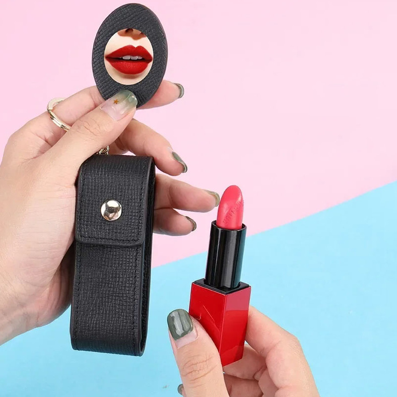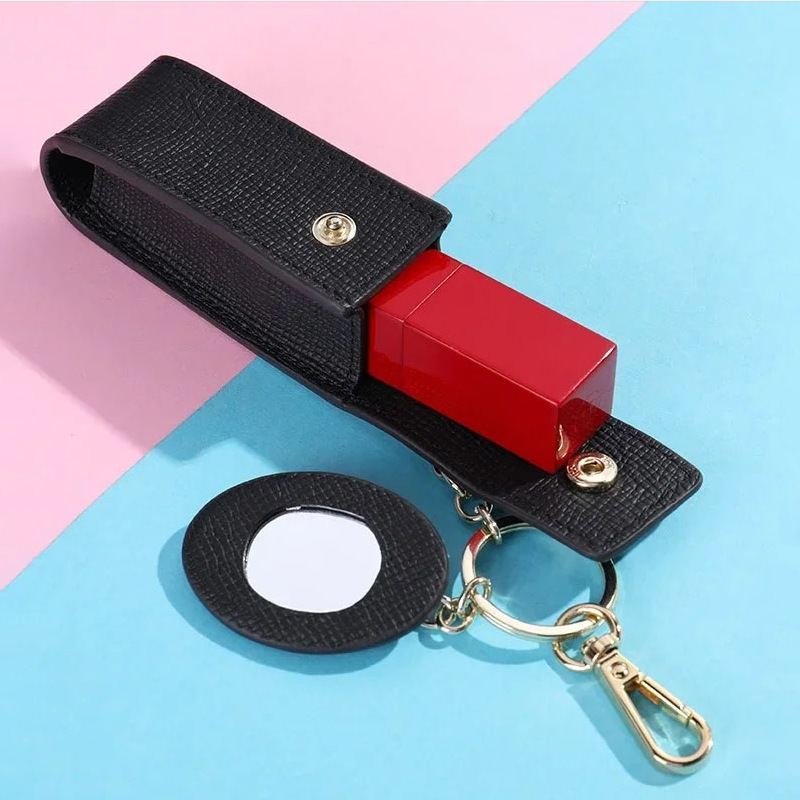 Simple fashion cowhide women's lipstick case high-end lipstick storage case with mirror portable keychain lipstick case