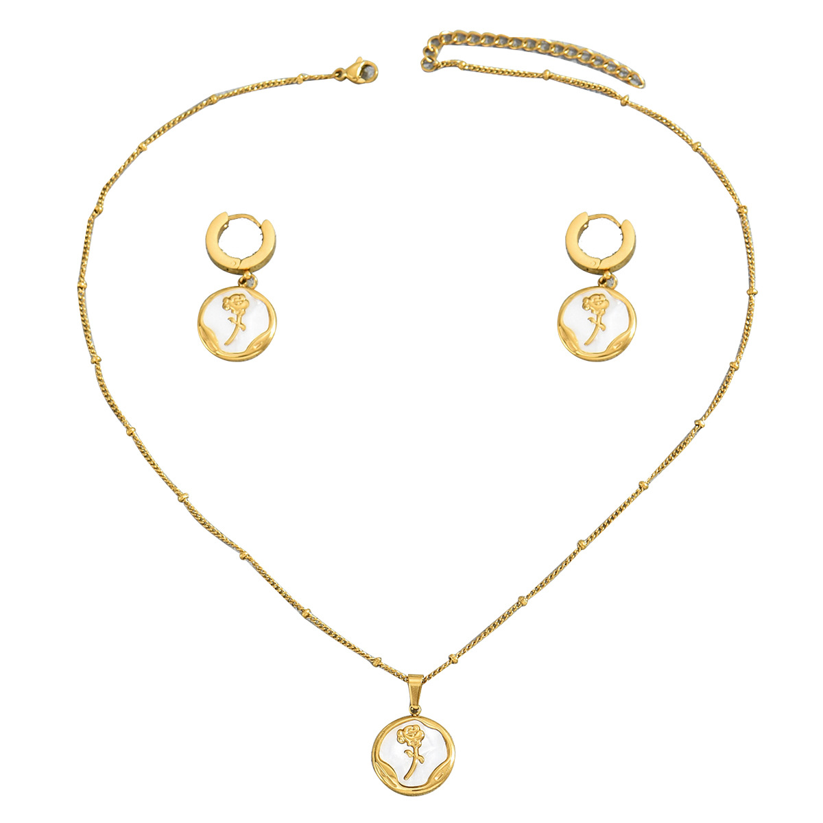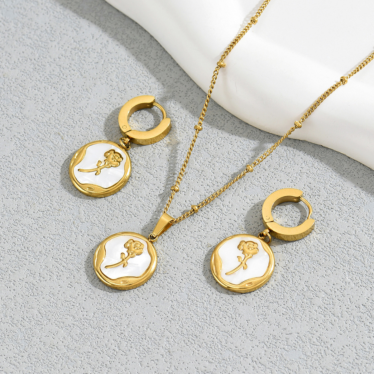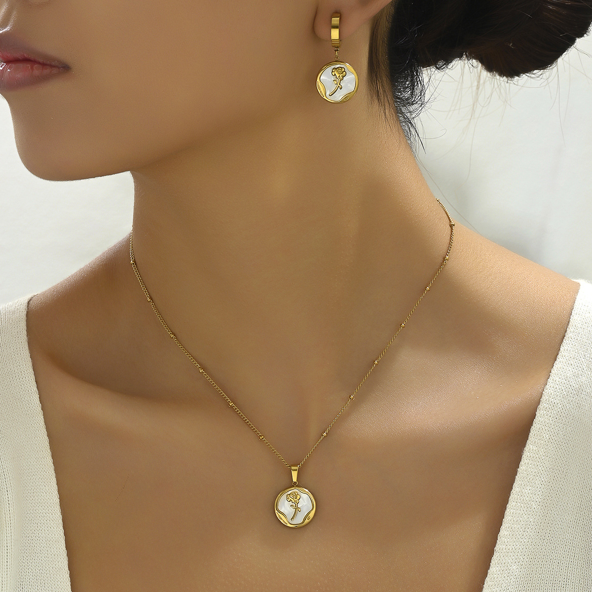 | nameOriginal | Simple Fashion Necklace Women's Summer High-end Sense Personalized Rose Mother-of-pearl Earrings suit All-match Jewelry |