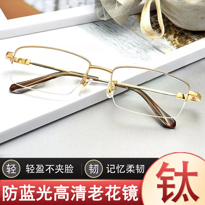 Simple Half Frame Presbyopia Glasses Middle-aged and Elderly High-definition Far and Near Dual-purpose Presbyopia Glasses for Men Anti-blue Light Eyes for Women Direct Selling