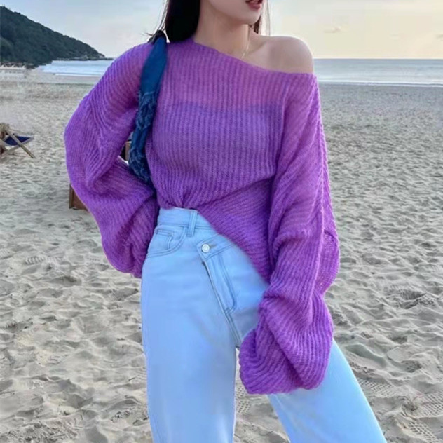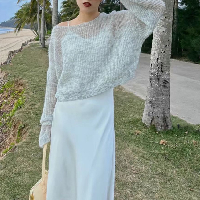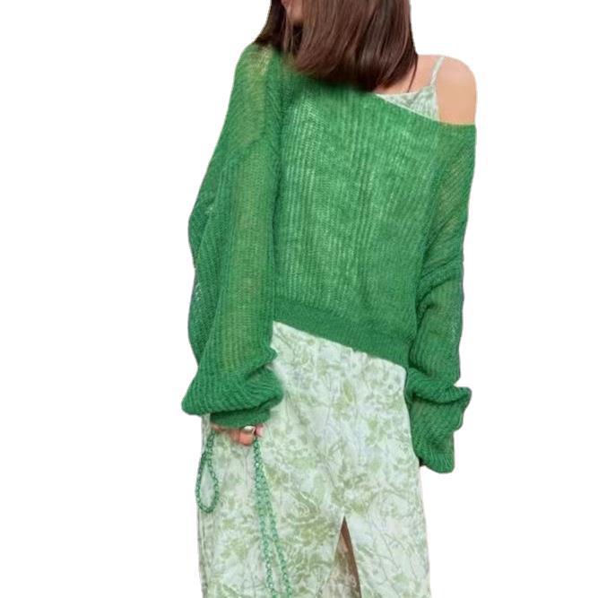 | nameOriginal | Simple Hollow Round Neck Sweater Spring New Arrival Laid-back Style Shoulder Thin Sweater Loose All-match Top Women's Trendy |