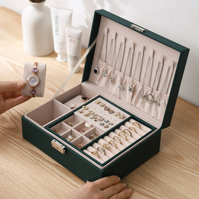 | nameOriginal | Simple large-capacity double-layered jewelry box with lock, earrings, necklaces, earrings, ring display storage box |