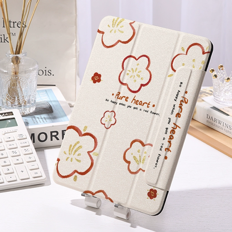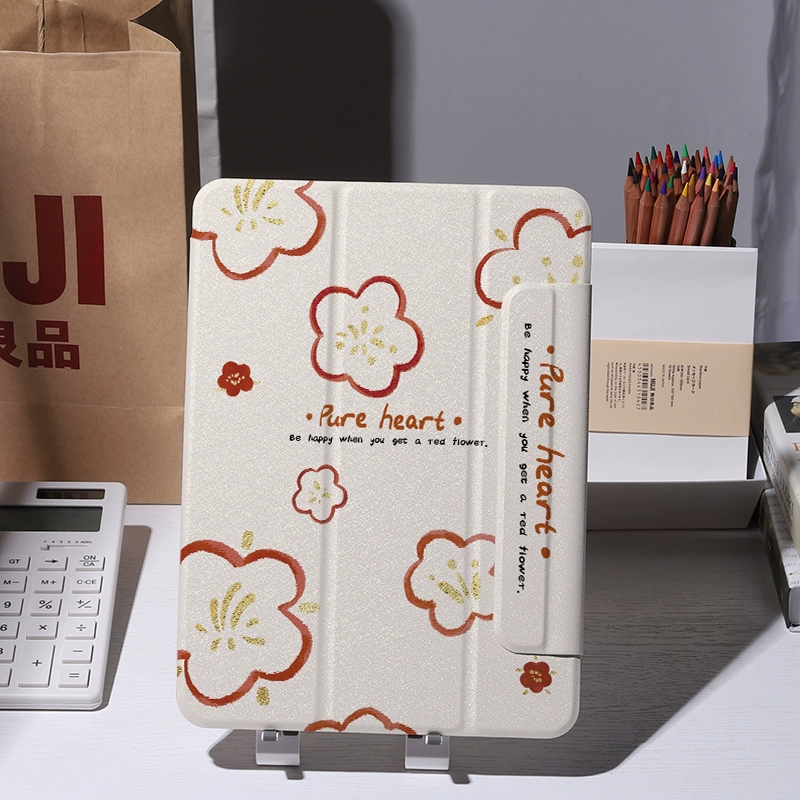 Simple little red flower 2024 new iPad10 protective case suitable for Apple tablet Air5/4 magnetic split buckle 13-inch cartoon Pro12.9 back sticker double-sided clip leather case ultra-thin