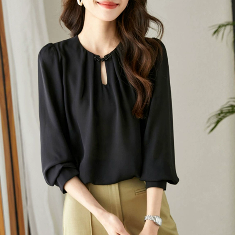 | nameOriginal | Simple long-sleeved versatile beaded autumn chiffon pullover |