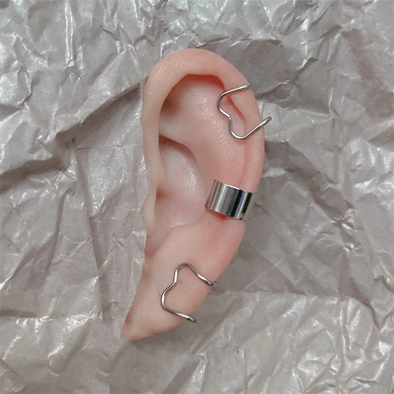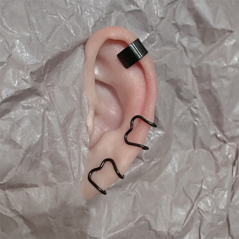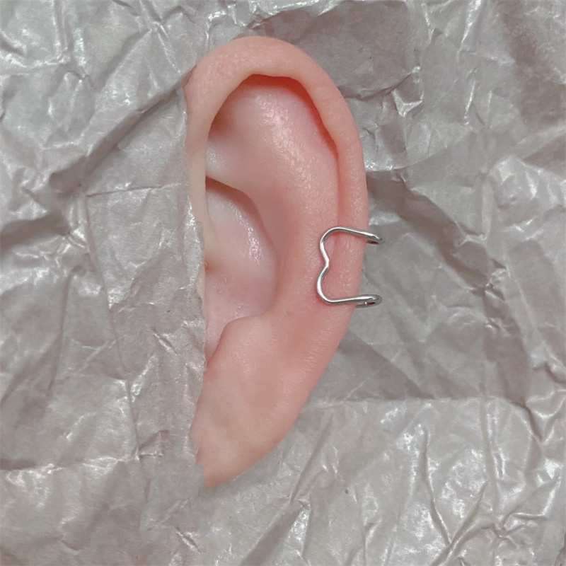 Simple Love ins Ear Clip Women's Peach Heart Ear Bone Clip Cochlear Clip Double Layer Titanium Steel Earrings Without Ear Holes Men's Ear Jewelry
