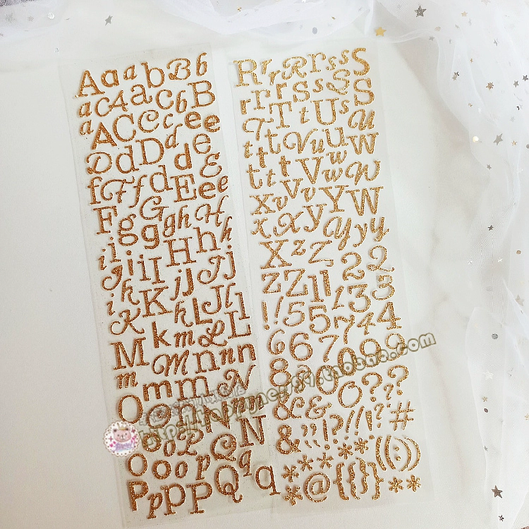 | nameOriginal | .Simple packaging black gold blue extra large sheet English alphanumeric symbols gold powder sticker AB side |