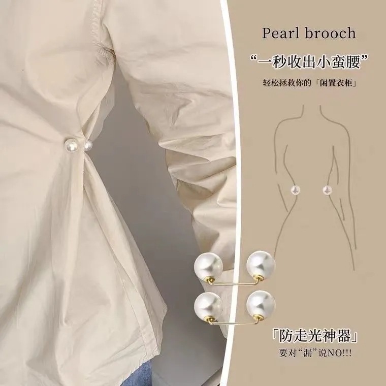 Simple Pearl Anti-glare Buckle Brooch Skirt Waist Tight Artifact Fixed Clothes Collar Accessories Pearl Cardigan Buckle Pin