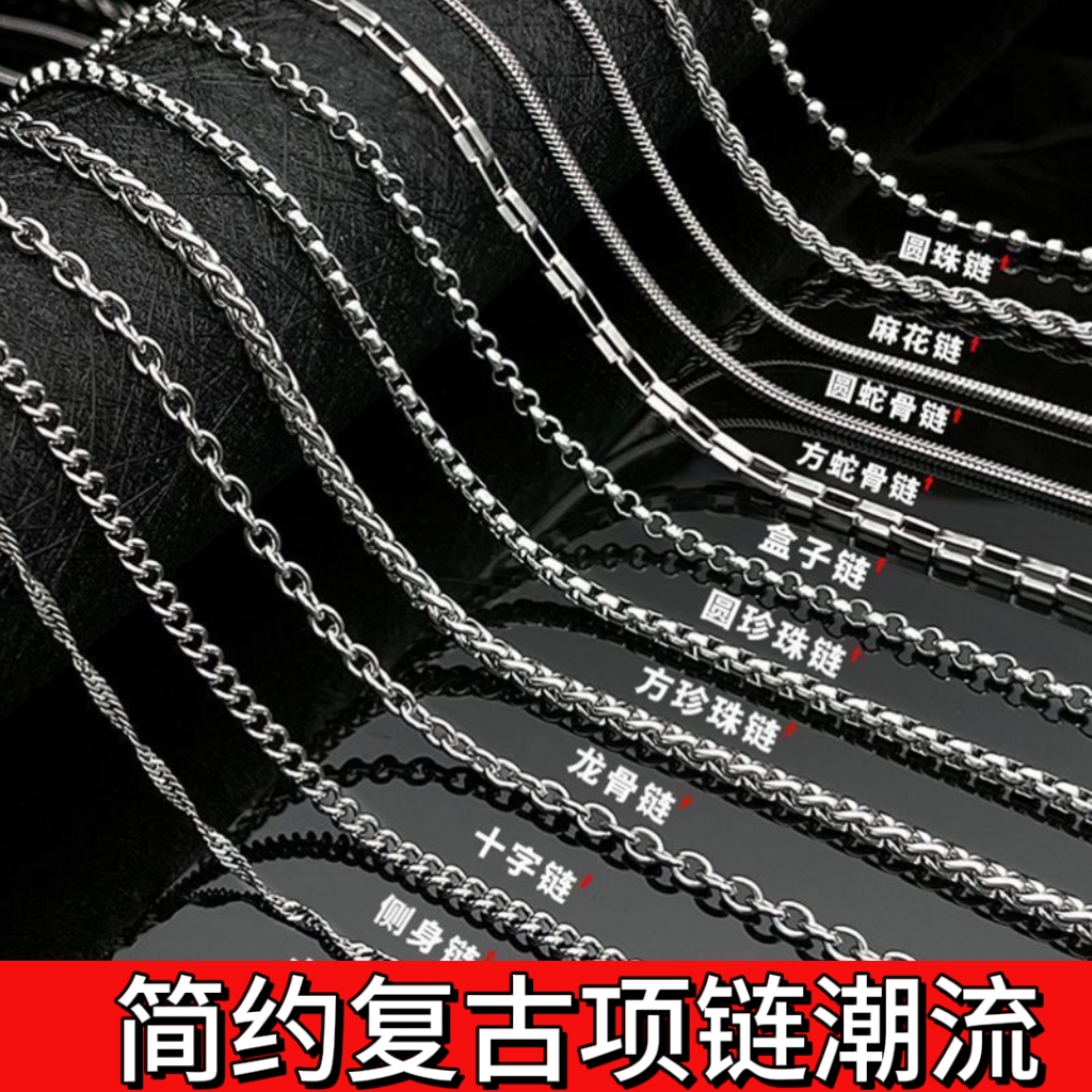 | nameOriginal | Simple pendant-free chain titanium steel necklace trendy men's snake bone chain women's keel chain twist chain replacement matching chain does not fade |