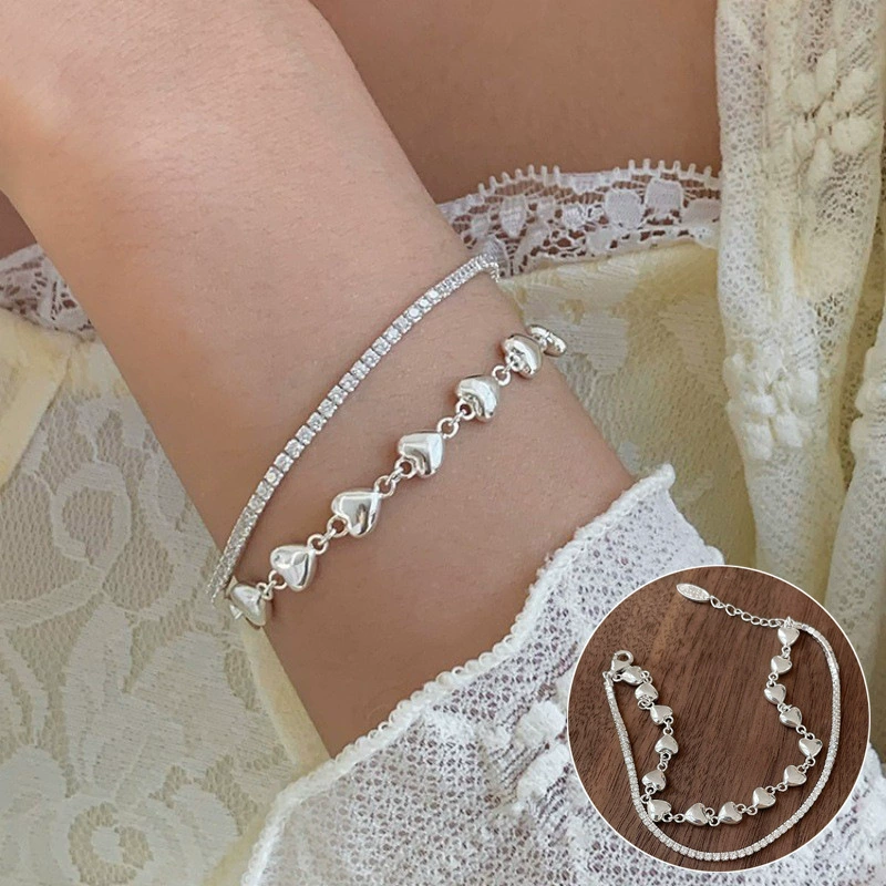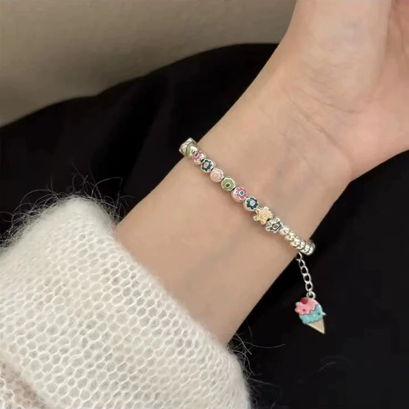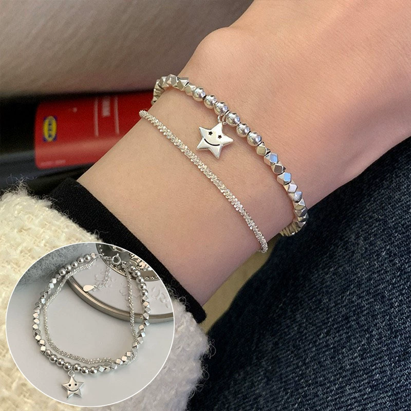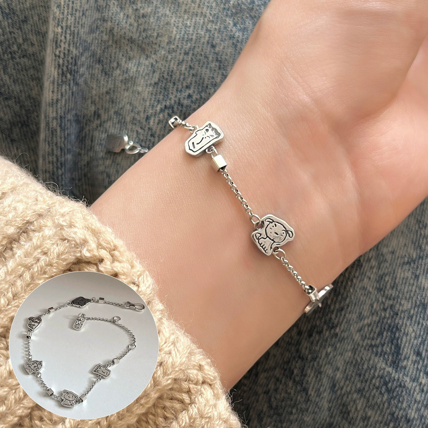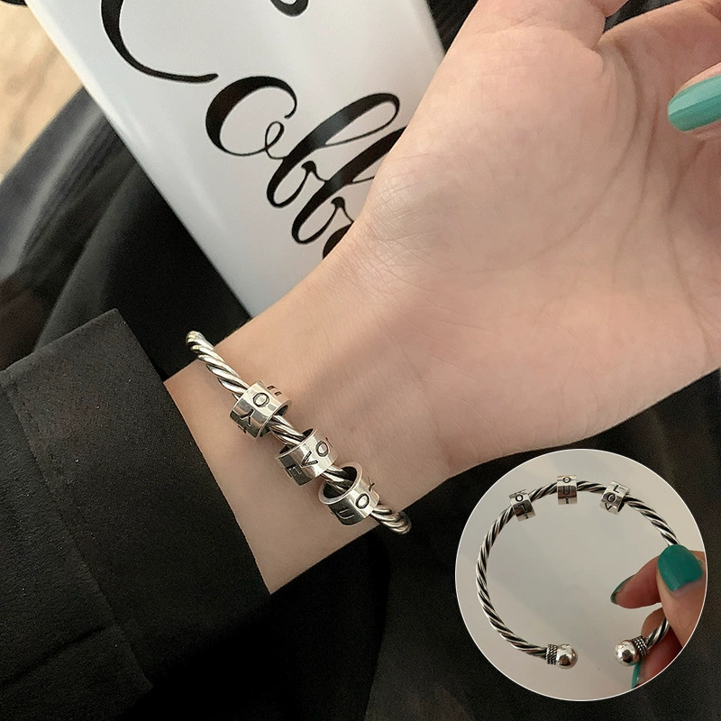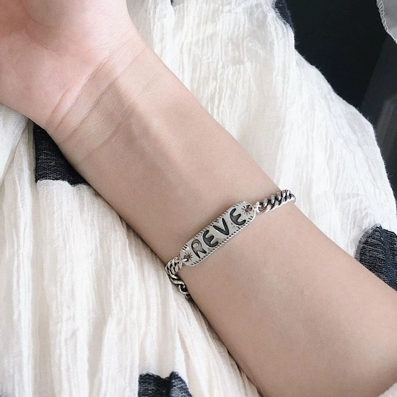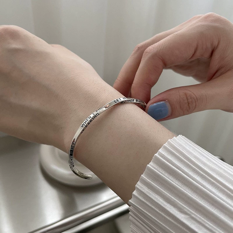 Simple plain ring bracelet for women Korean style fashionable personality geometric square S925 silver bracelet cold style hand decoration trend