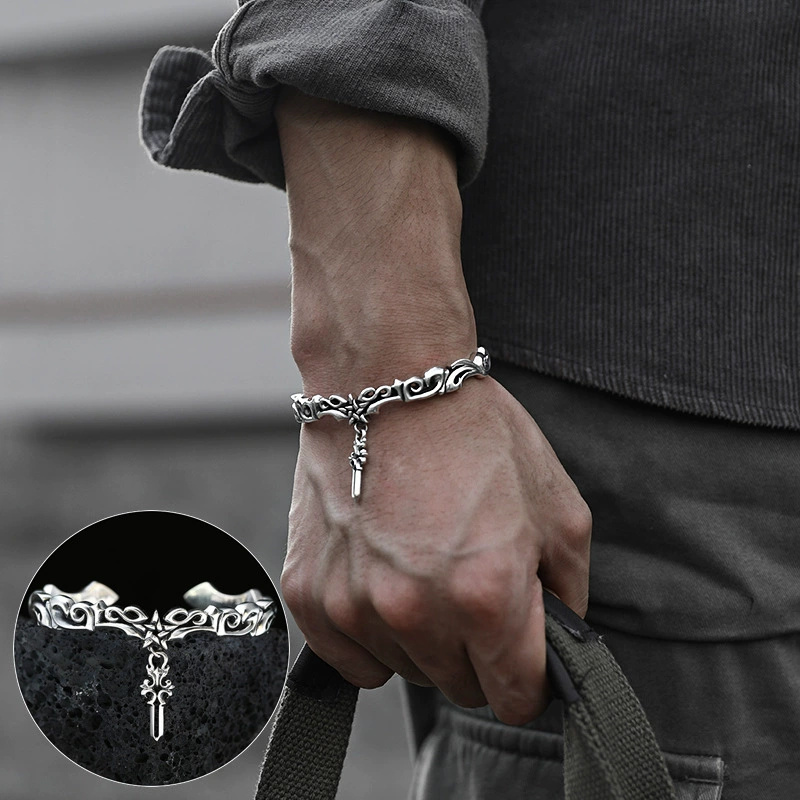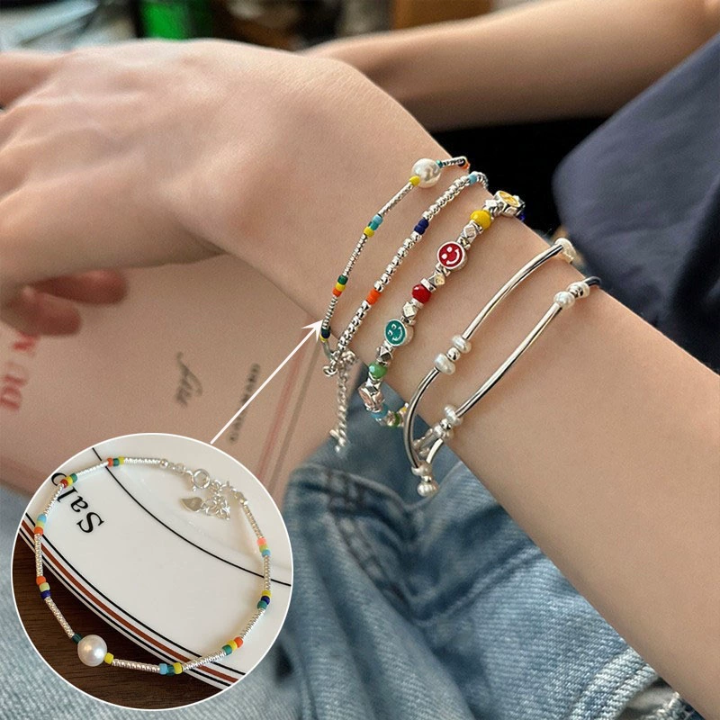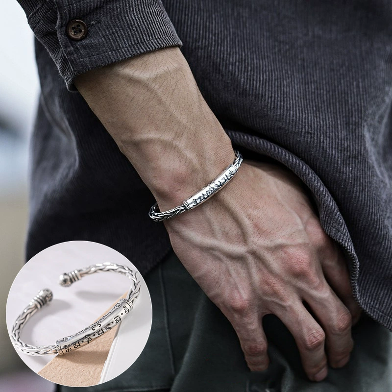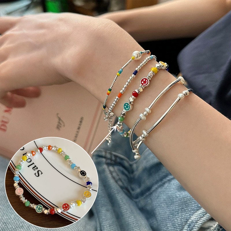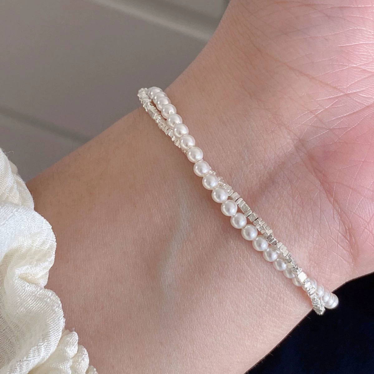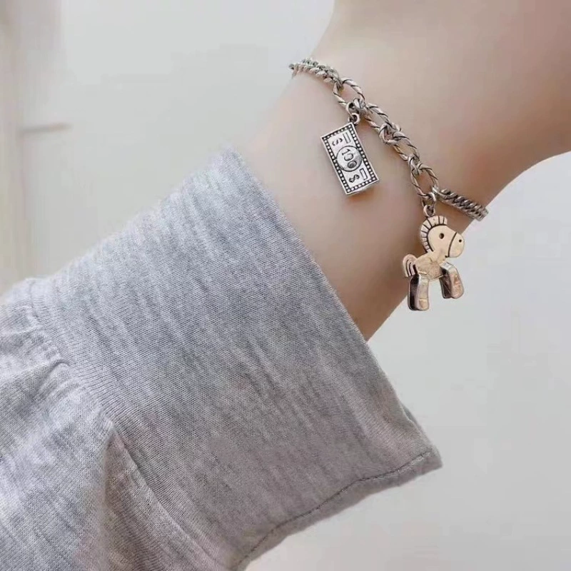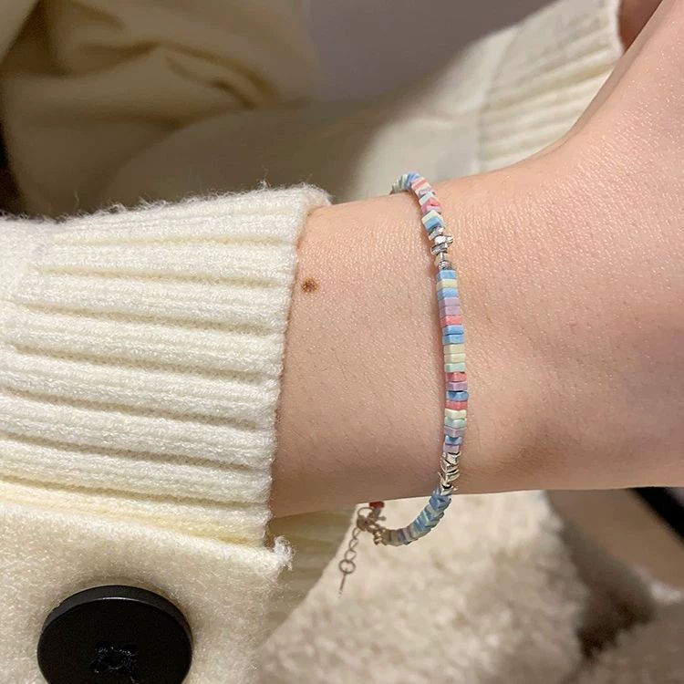 Simple plain ring bracelet for women Korean style fashionable personality geometric square S925 silver bracelet cold style hand decoration trend