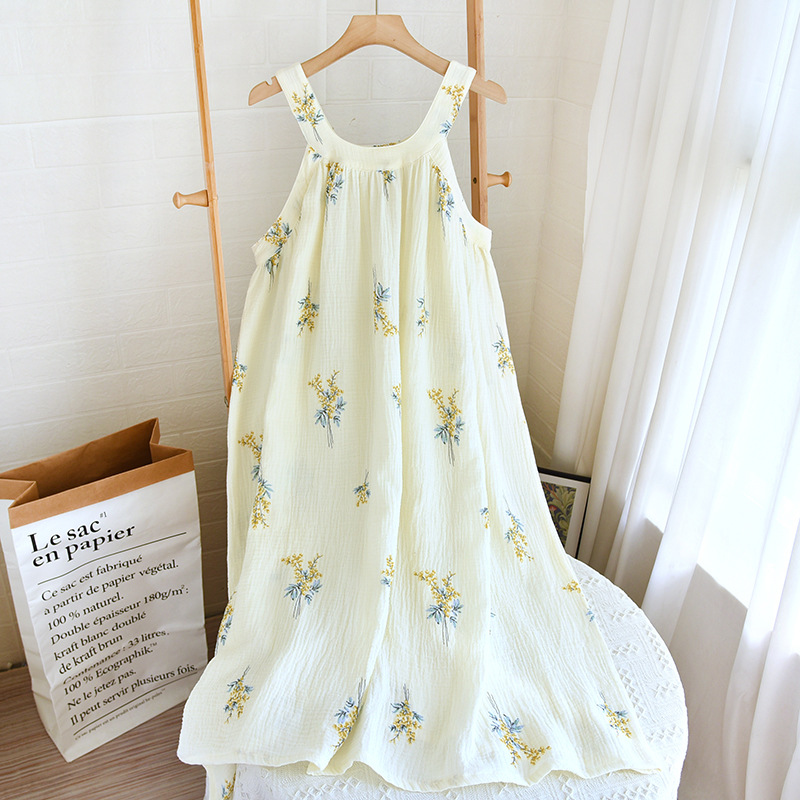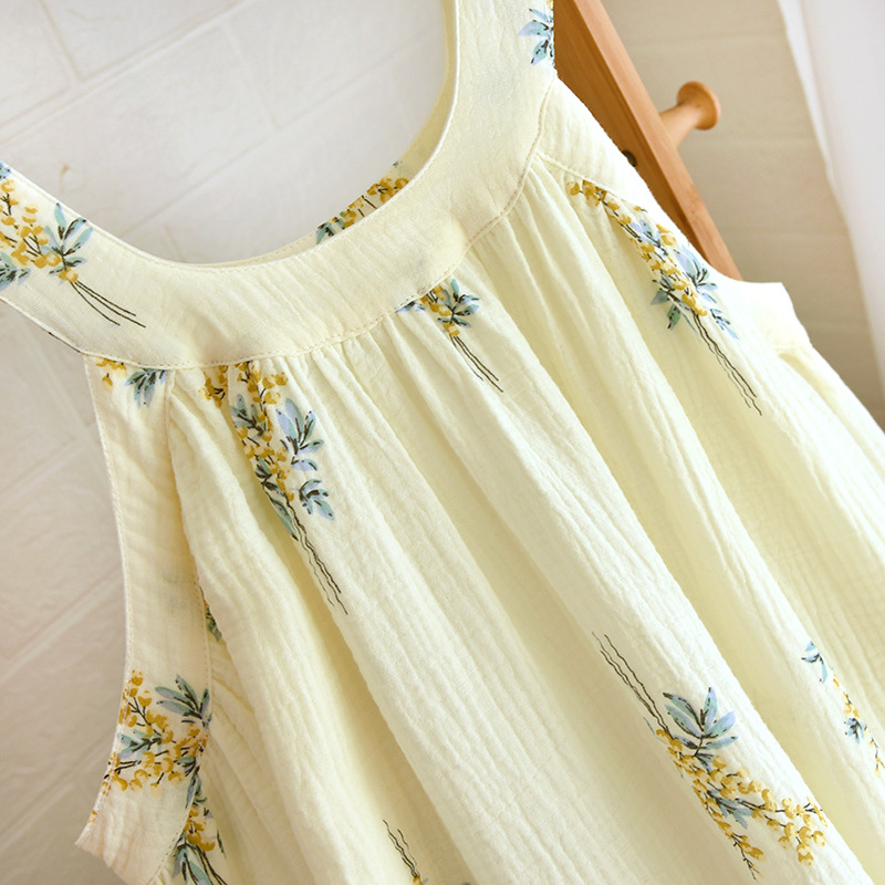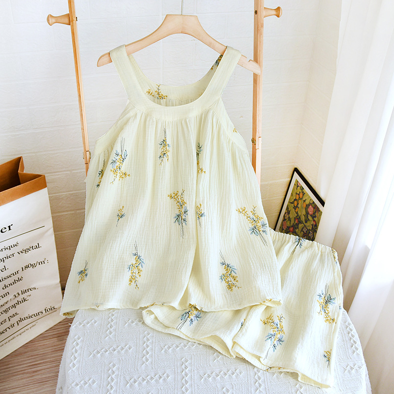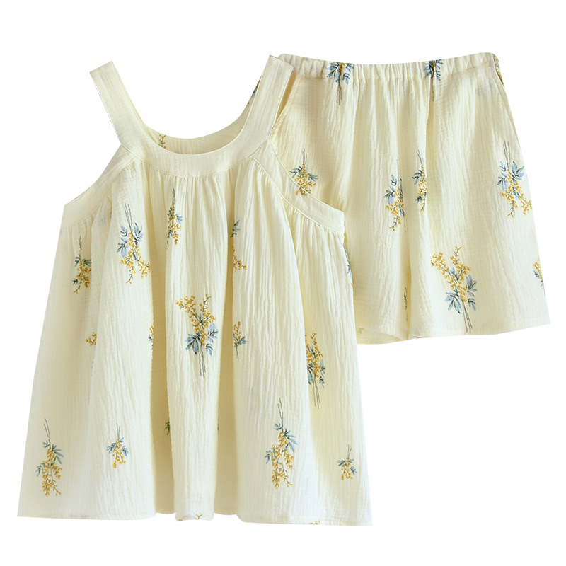 | nameOriginal | Simple printed pajamas women's spring and summer loose casual home wear sling suit women's cotton yarn two-piece set |
