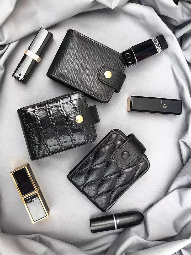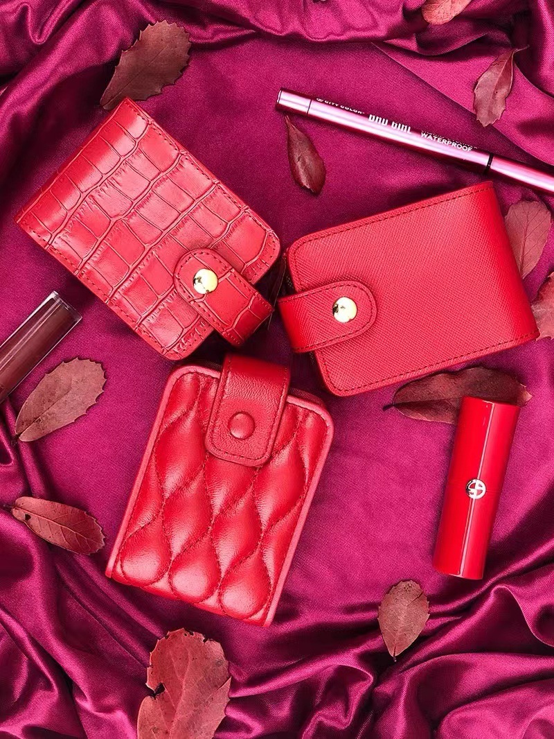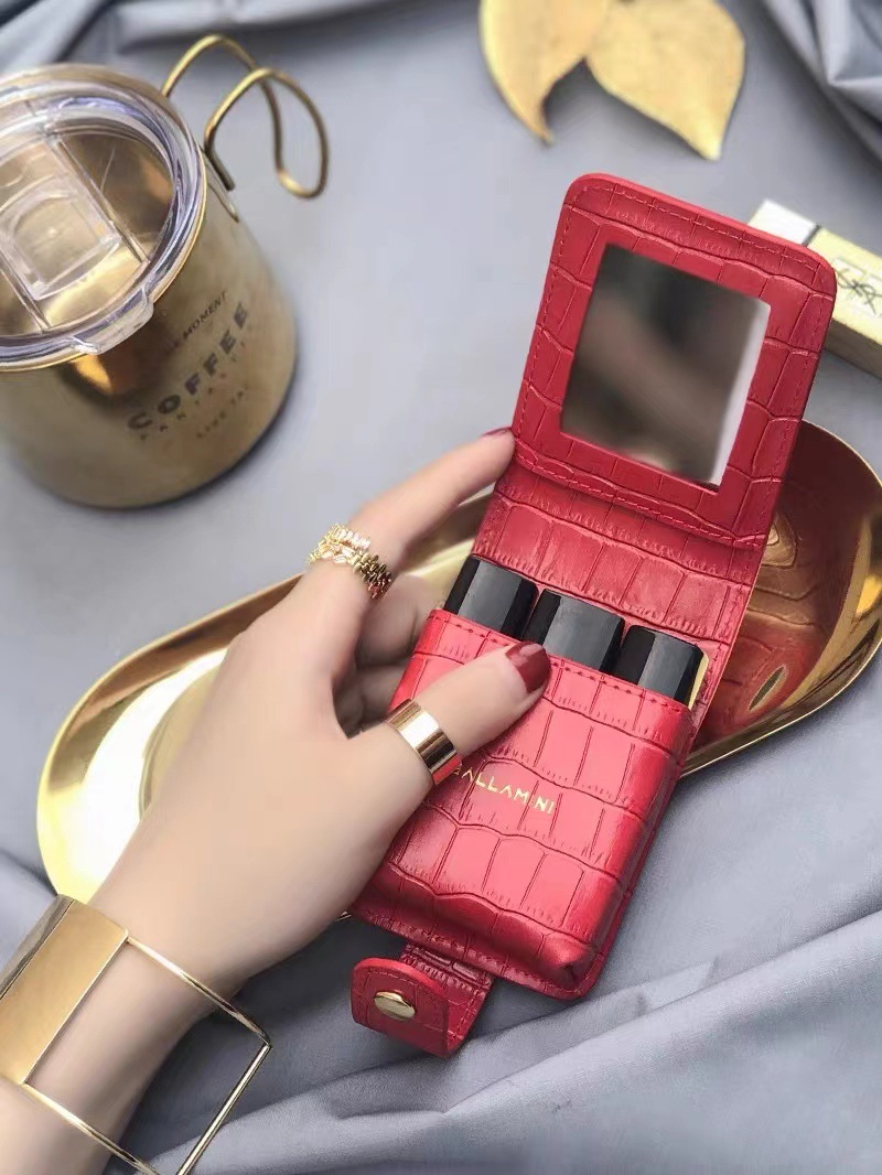 Simple PU Crocodile Pattern Korean Style Red Envelope Storage Small Portable Carry-on Makeup Lip Balm Bag with Mirror