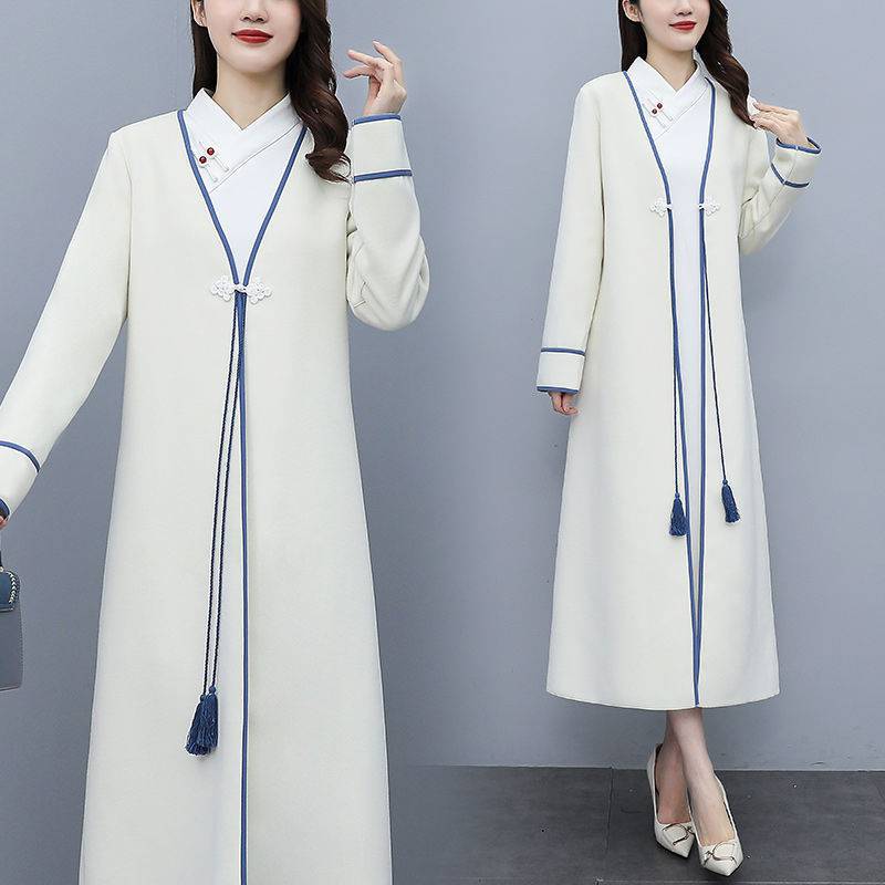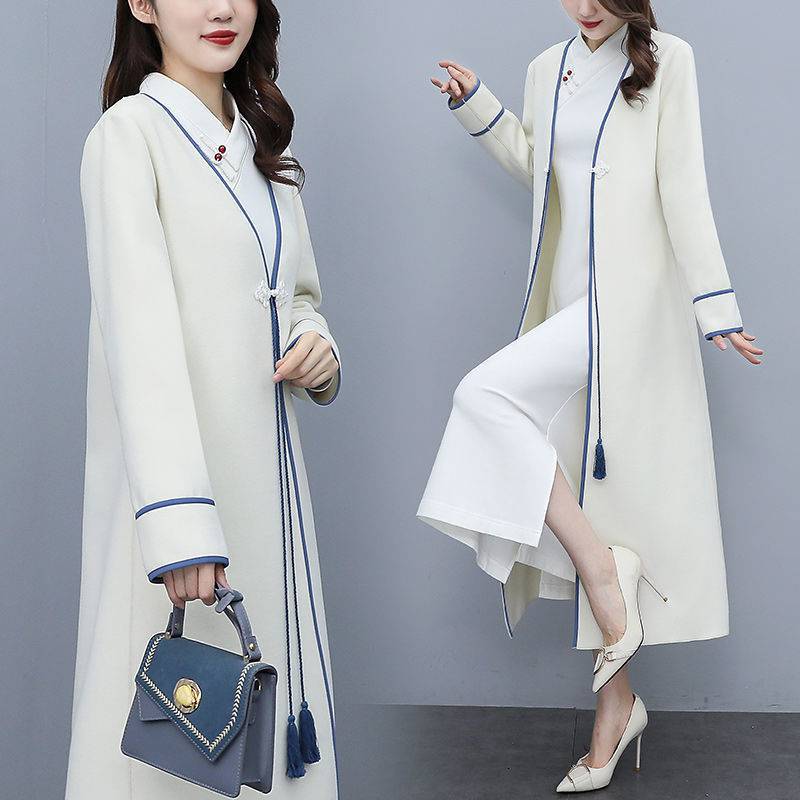 Simple retro Chinese style double-sided woolen coat for women 2023 Autumn New Age-reducing long over-the-knee woolen coat