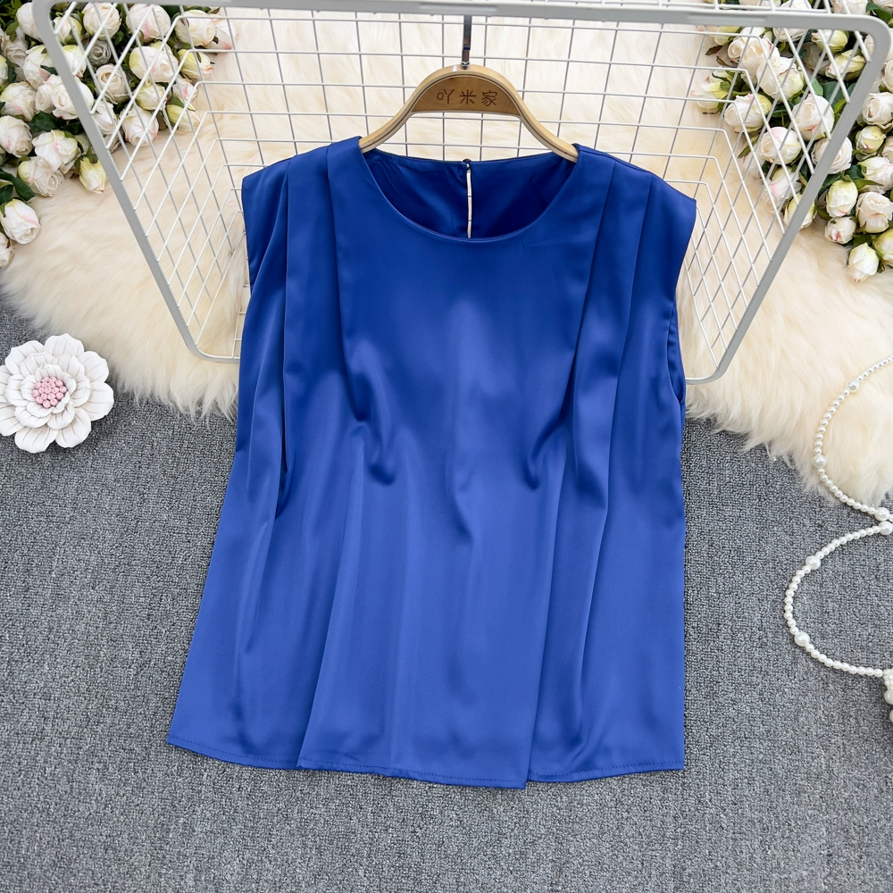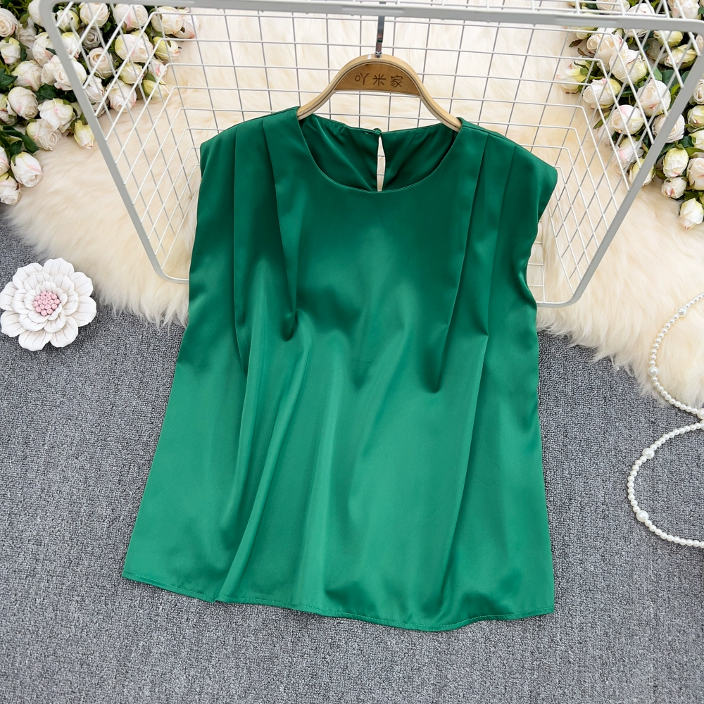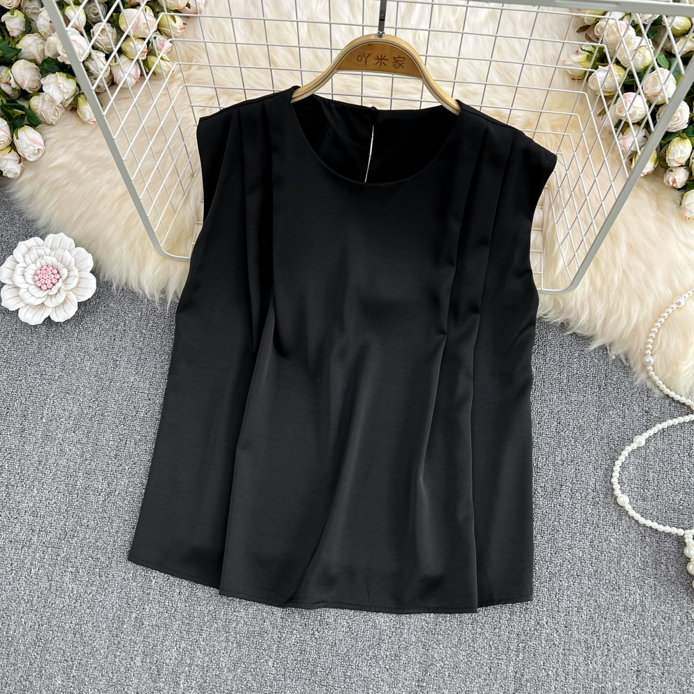 | nameOriginal | Simple round neck loose sleeveless outer vest satin |