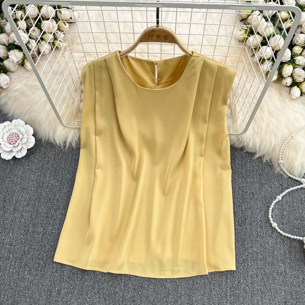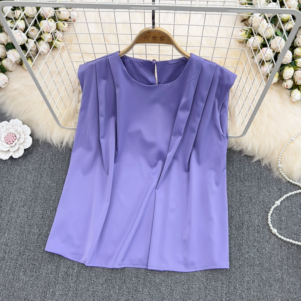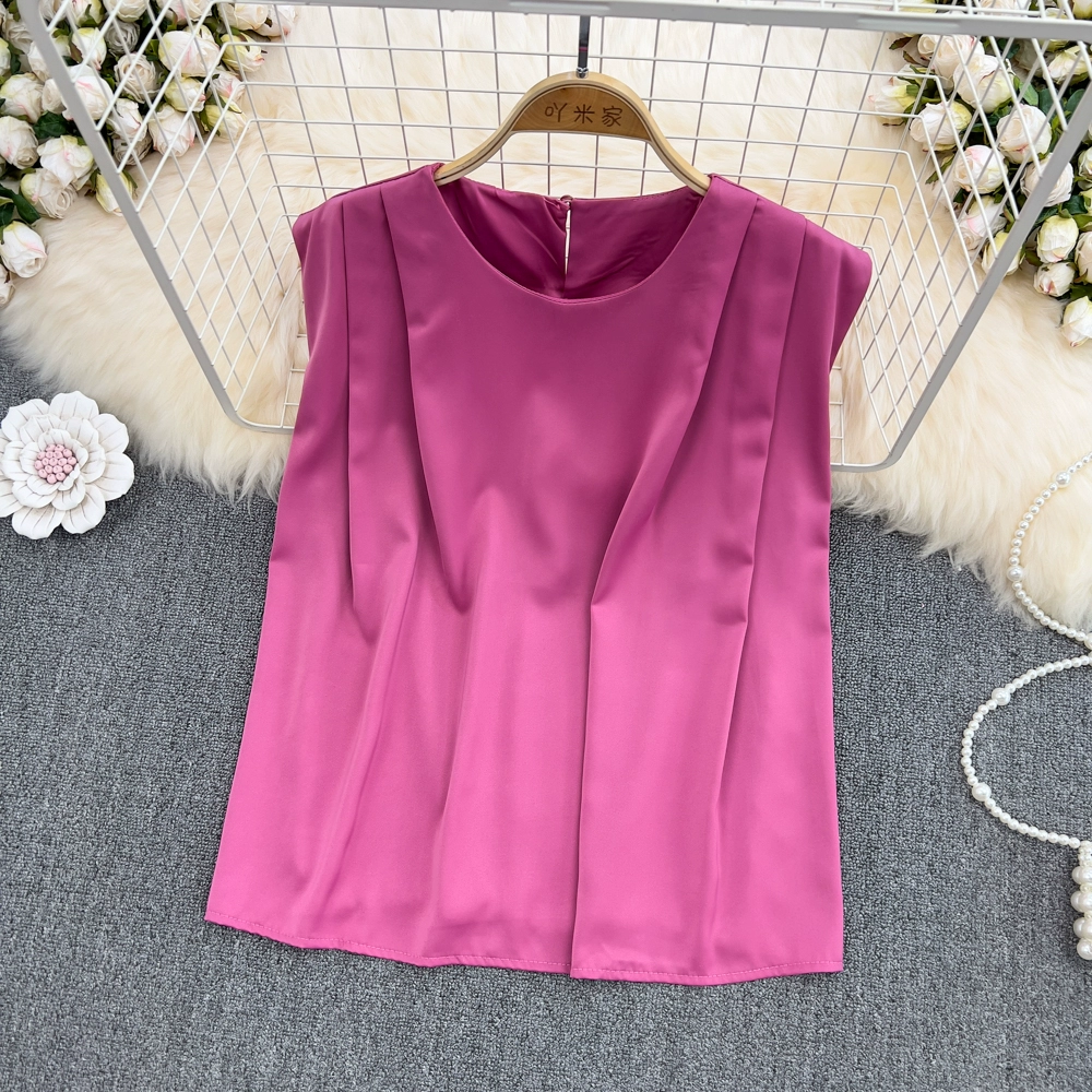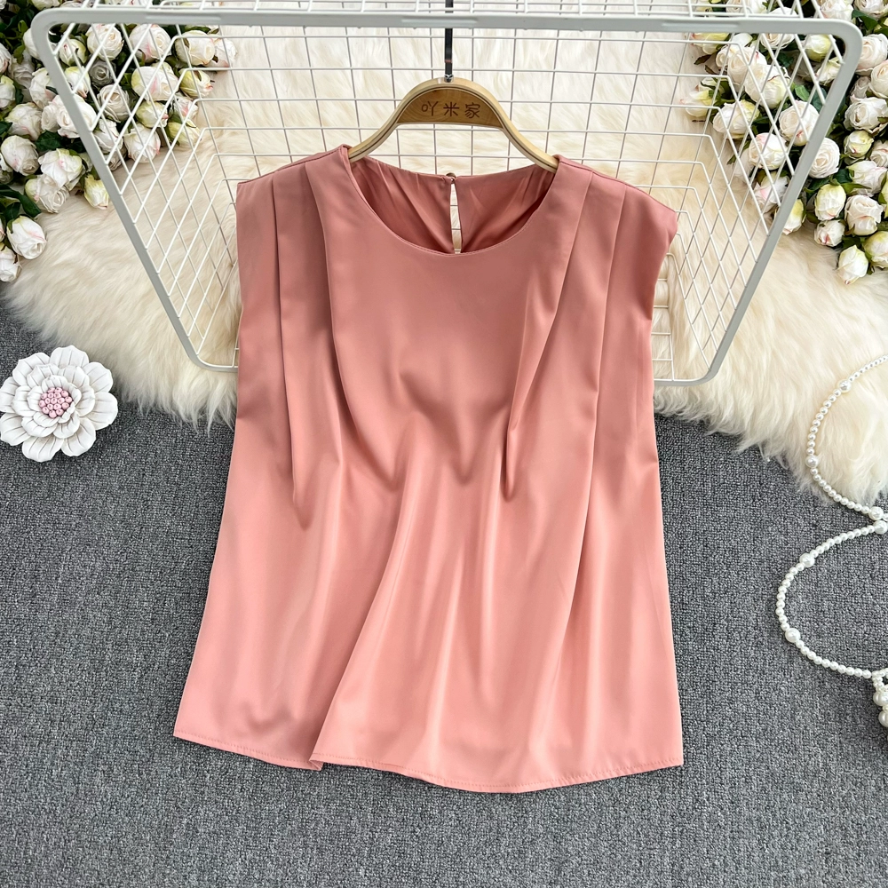| nameOriginal | Simple round neck loose sleeveless outer vest satin |