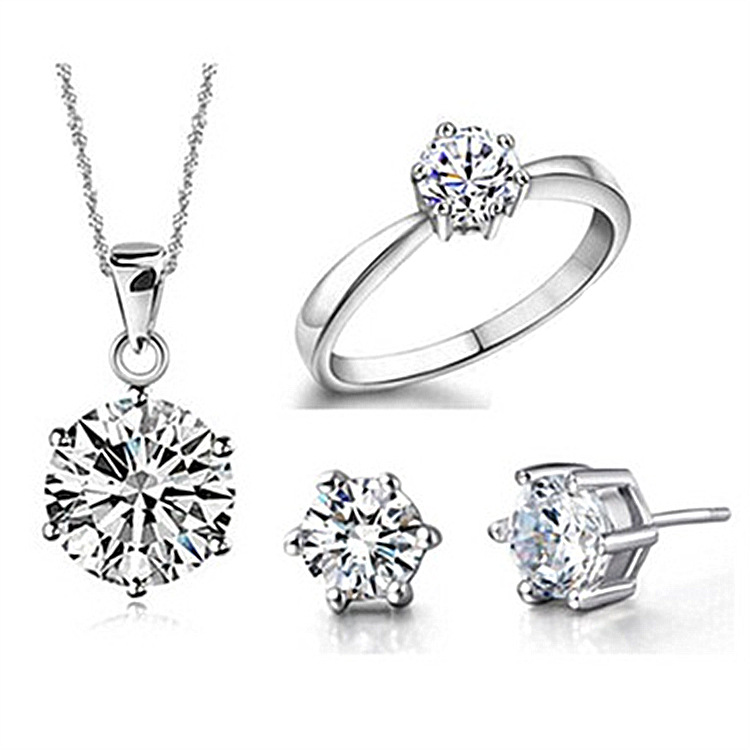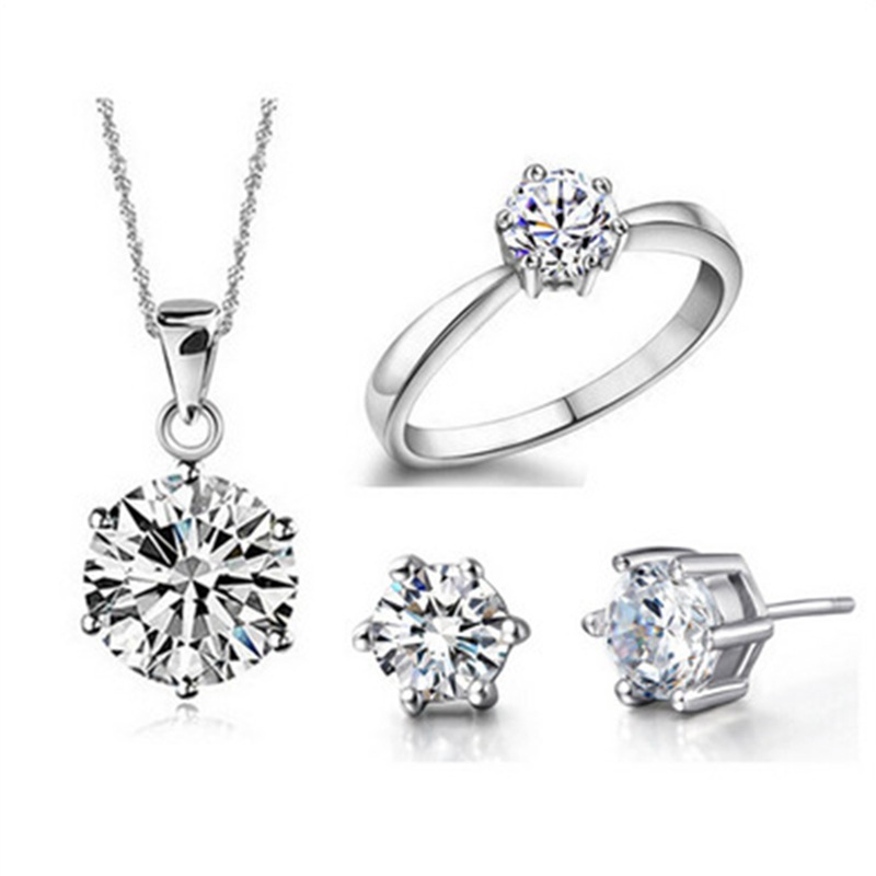 Simple six-claw zircon set earrings necklace ring three-piece small fresh jewelry set foreign trade copper set