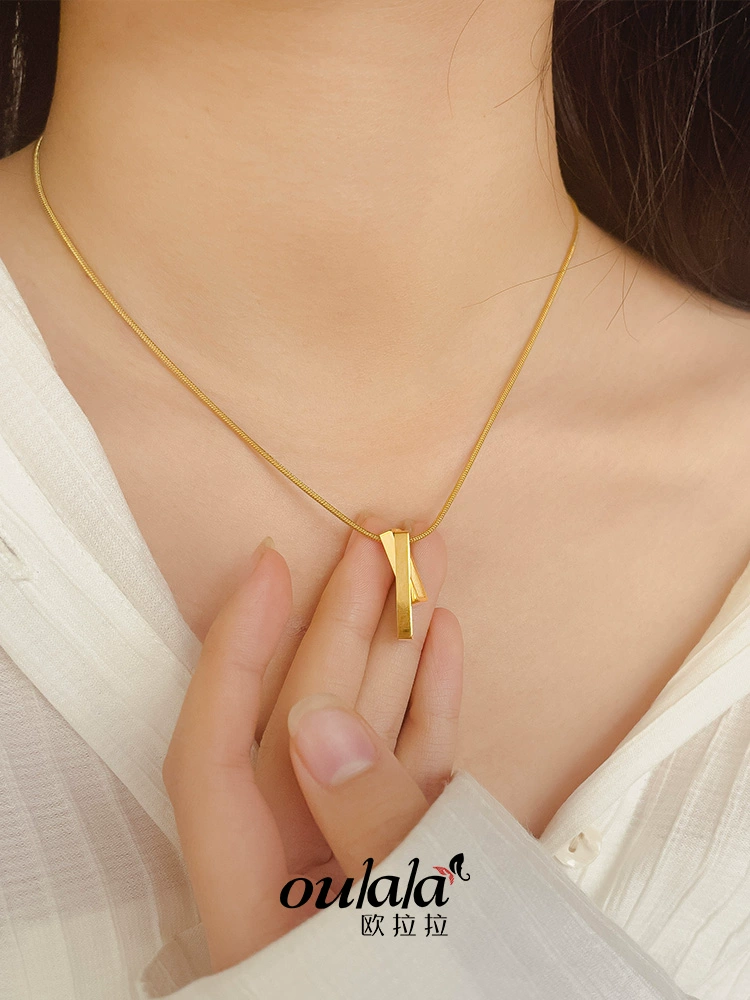 Simple snake bone chain necklace female geometric fastening pendant titanium steel street clavicle bone chain light luxury fashion jewelry