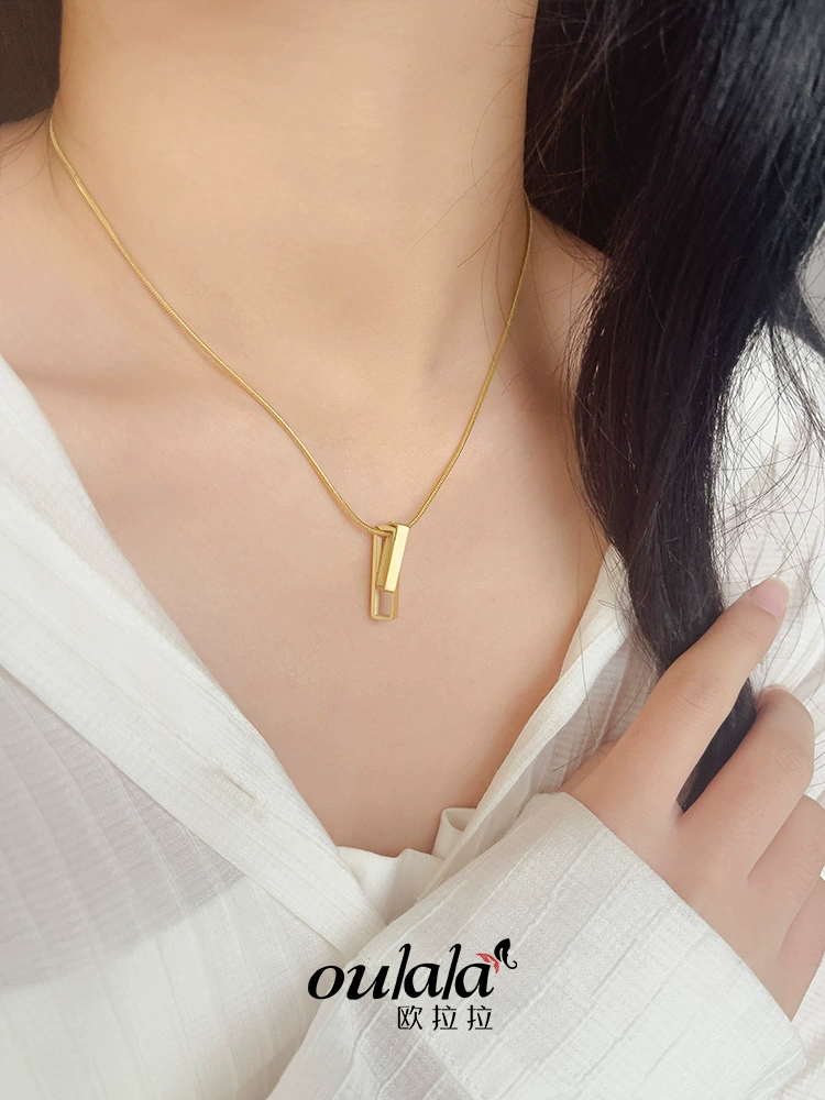 Simple snake bone chain necklace for women, geometric stacked buckle pendant, titanium steel street clavicle chain, light luxury fashion accessories