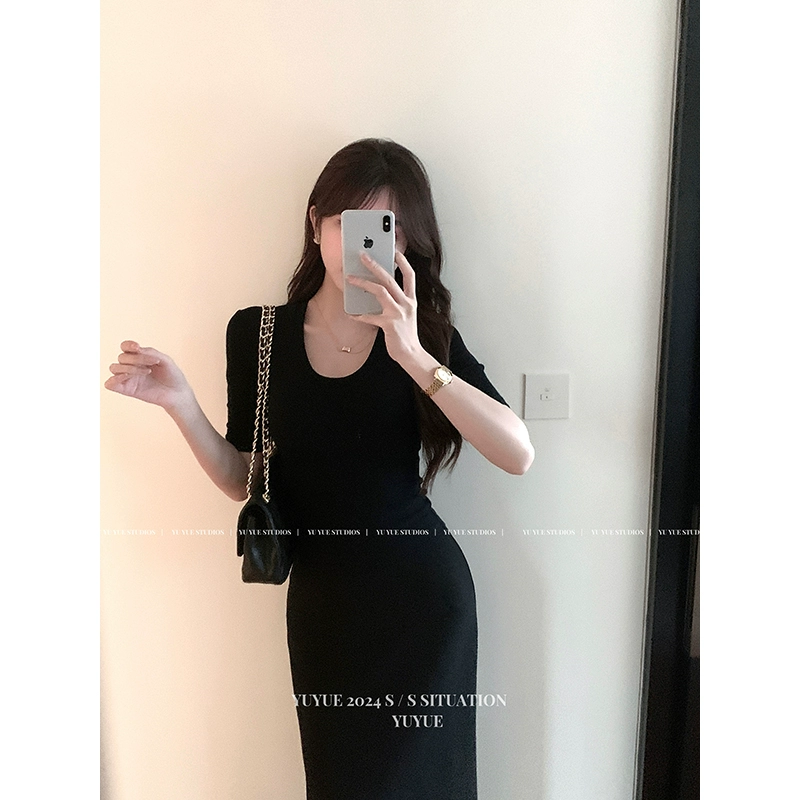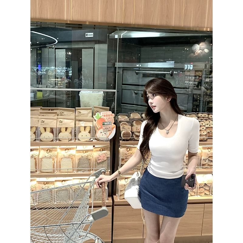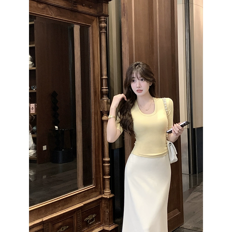 Simple solid color fashion slim waist short-sleeved T-shirt