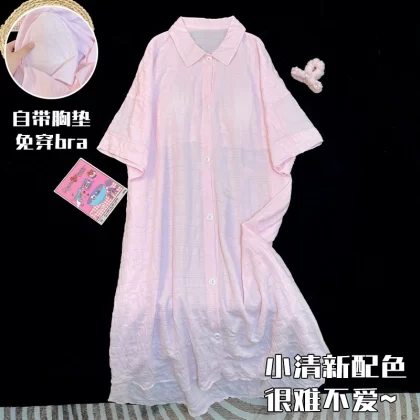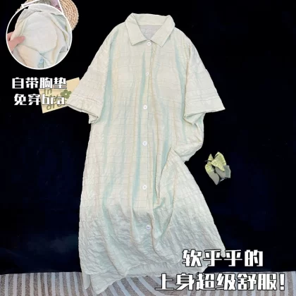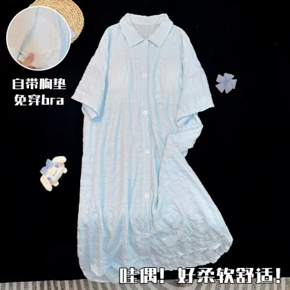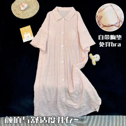 nameOriginal | Simple solid color shirt summer short-sleeved nightgown with chest pad |