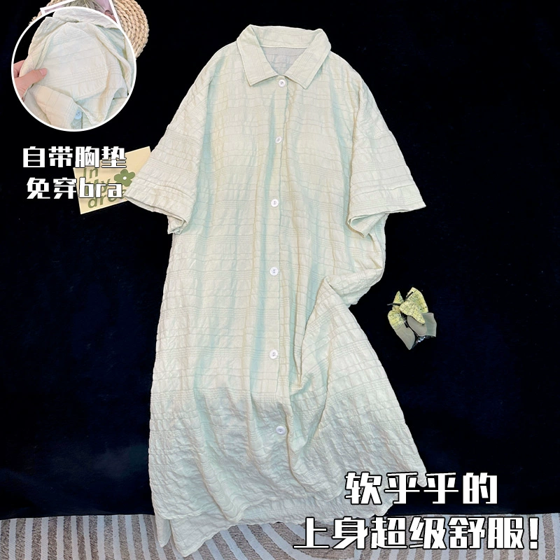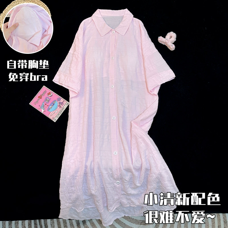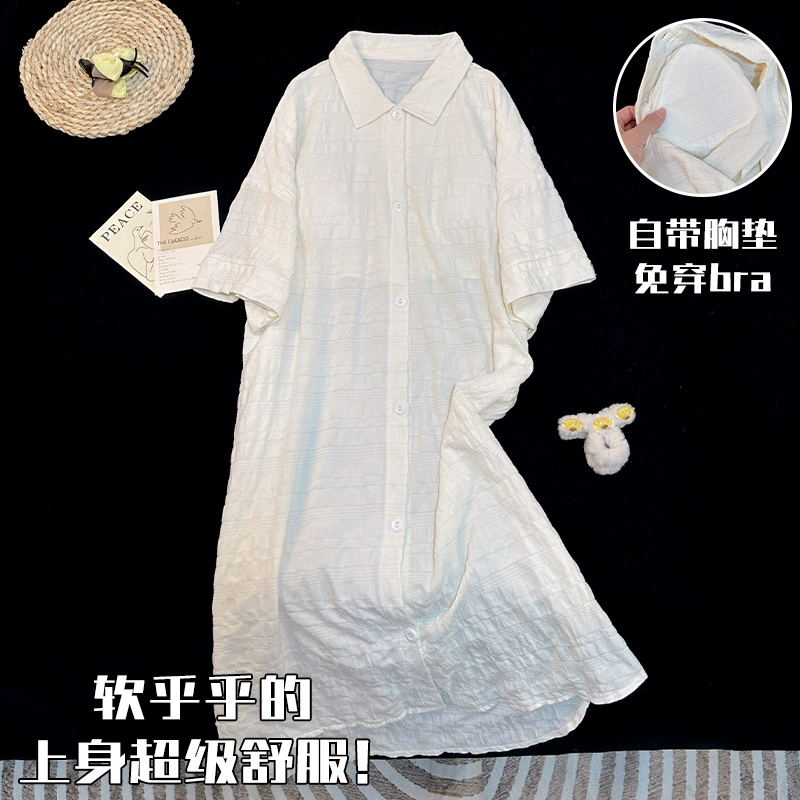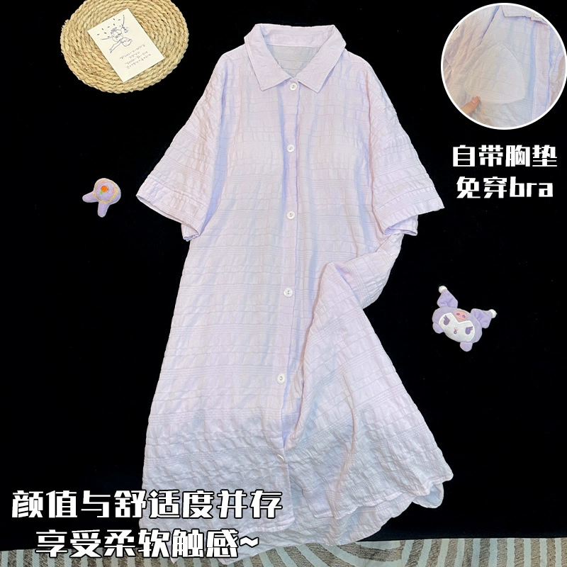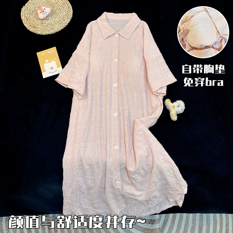 | nameOriginal | Simple solid color shirt summer short-sleeved nightgown with chest pad |
