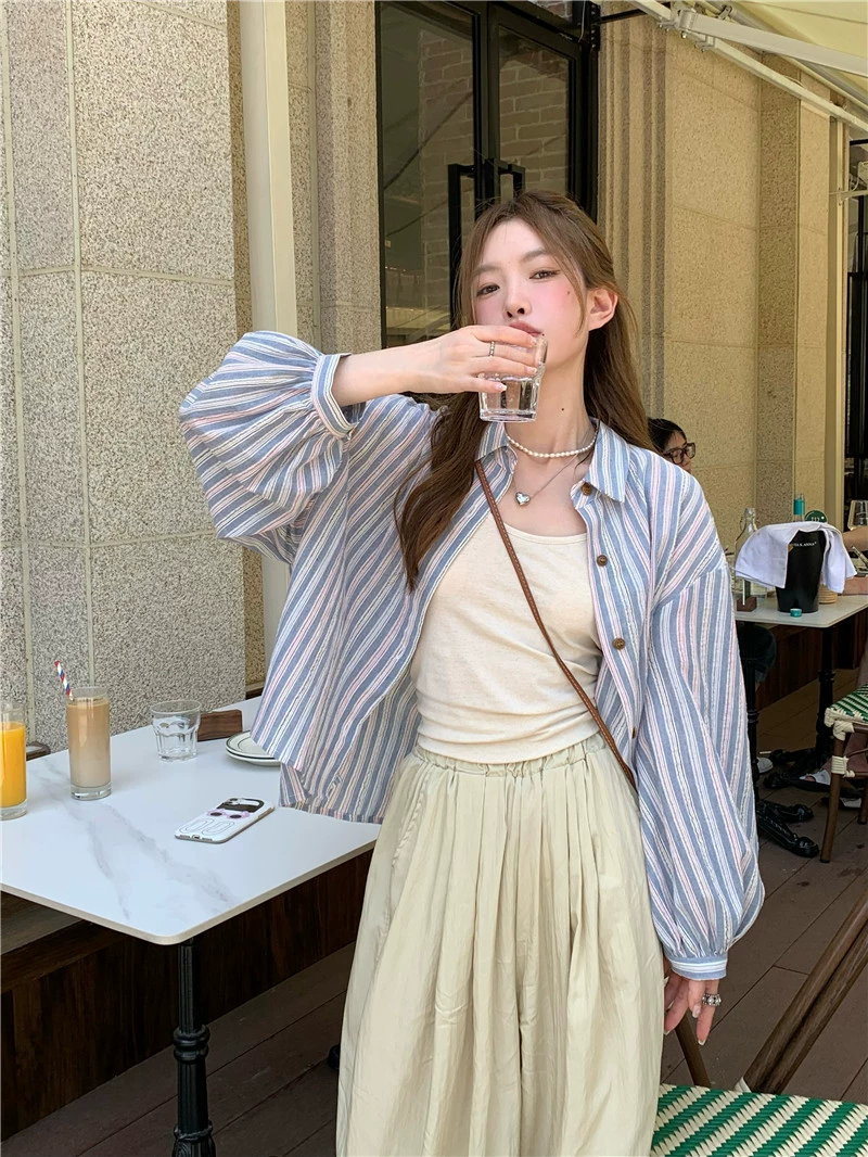 | nameOriginal | Simple striped loose irregular long-sleeved sun protection shirt |