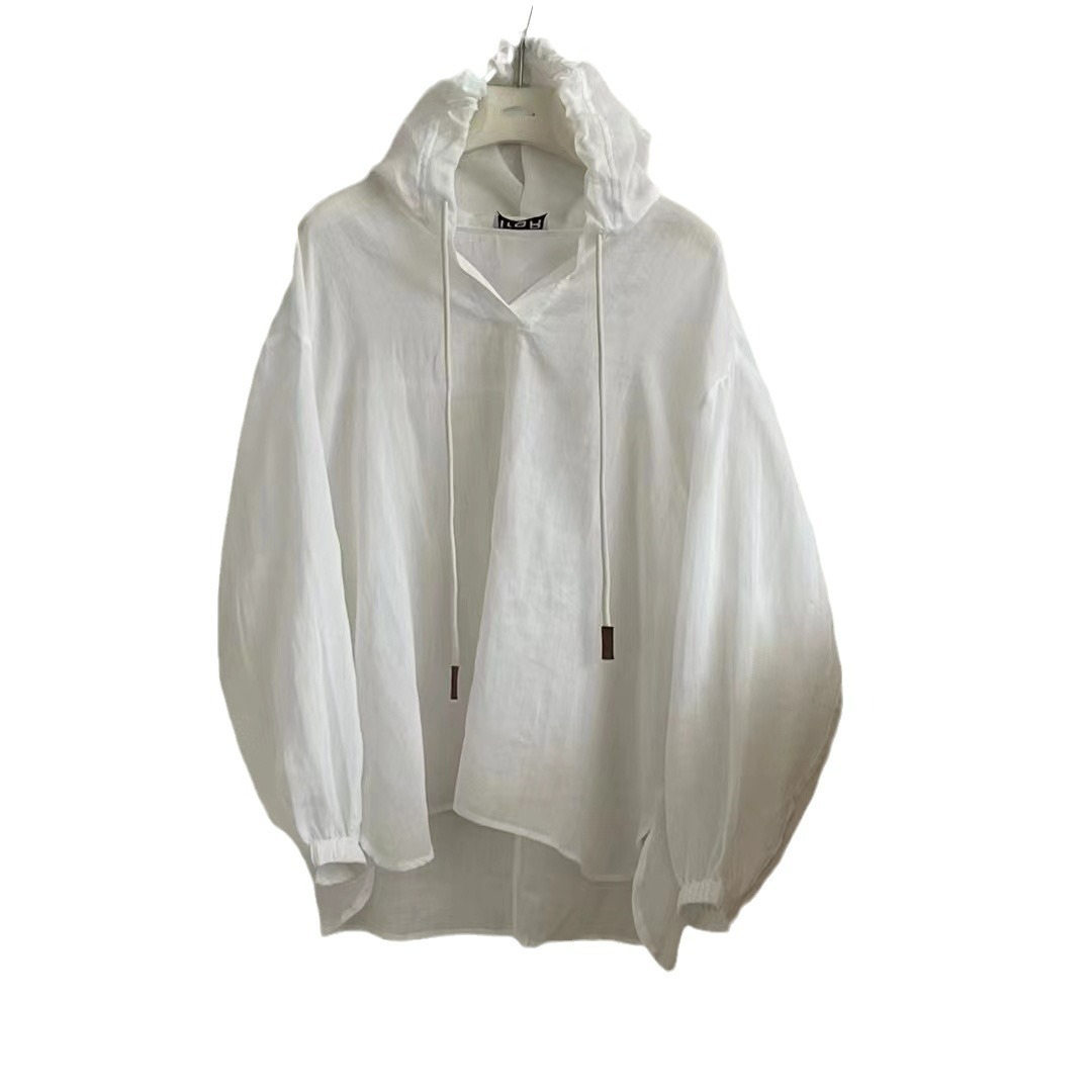 | nameOriginal | Simple Style Hooded Ramie Shirt Women's 2024 Summer New Loose Slimming Age-reducing All-match Sun-protective Clothing |
