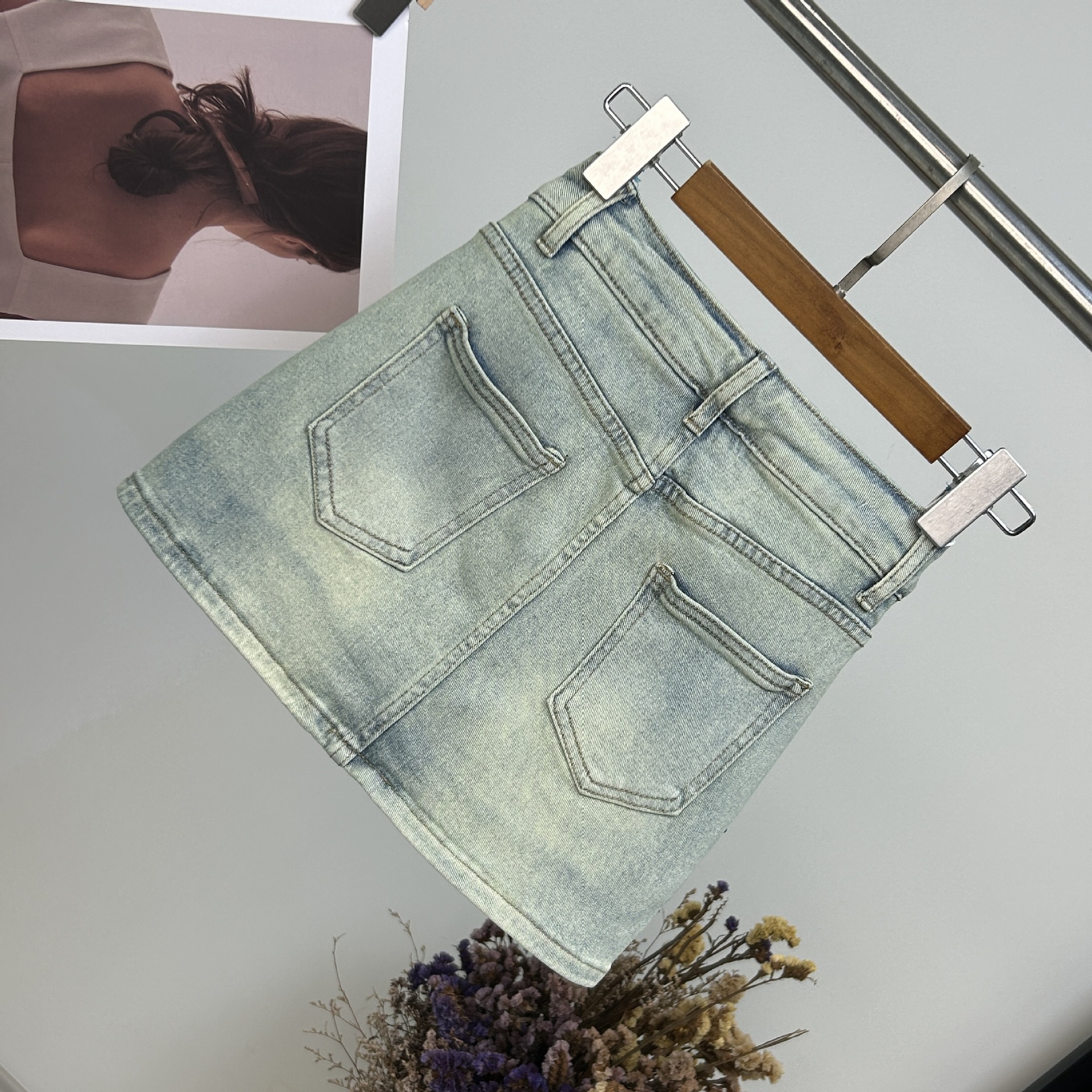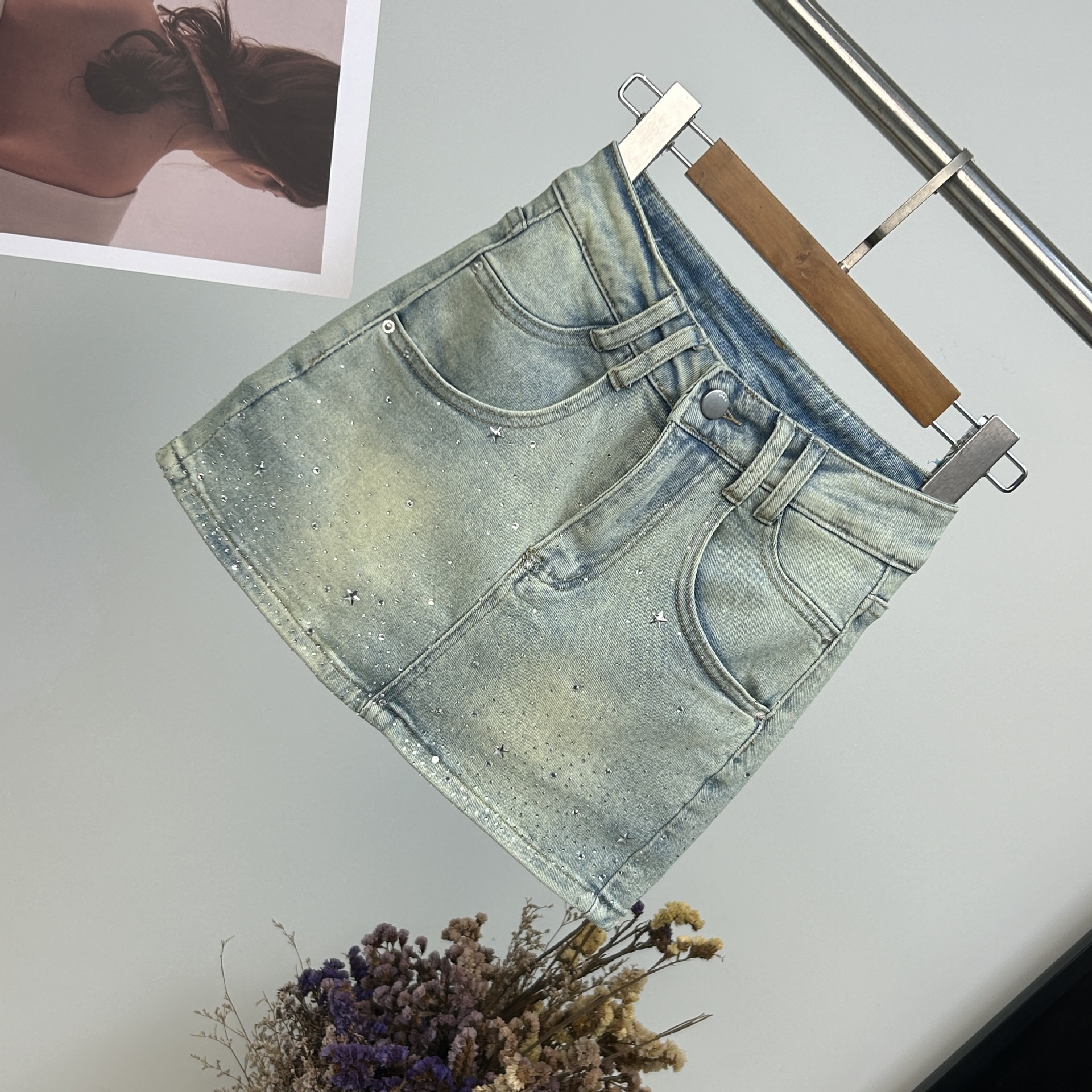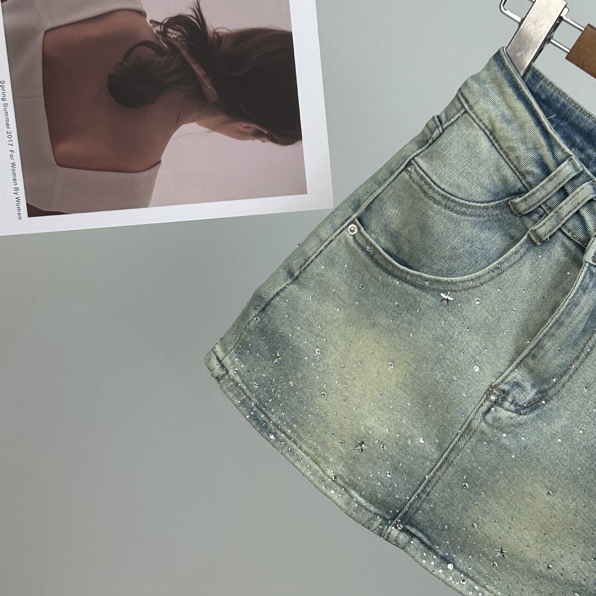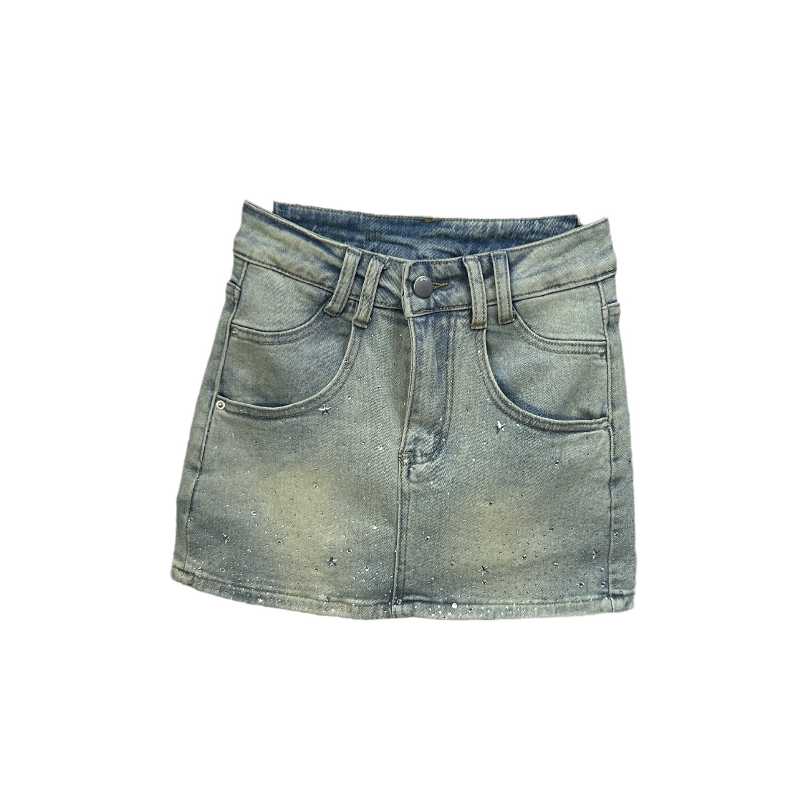 Simple ultra-short hip stretch slim Denim skirt 2024 new diamond-encrusted high waist anti-glare A- skirt