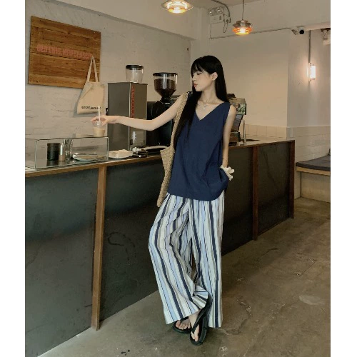 | nameOriginal | Simple V-neck elastic waist straight casual pants pullover |