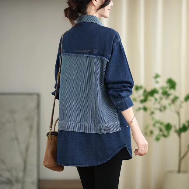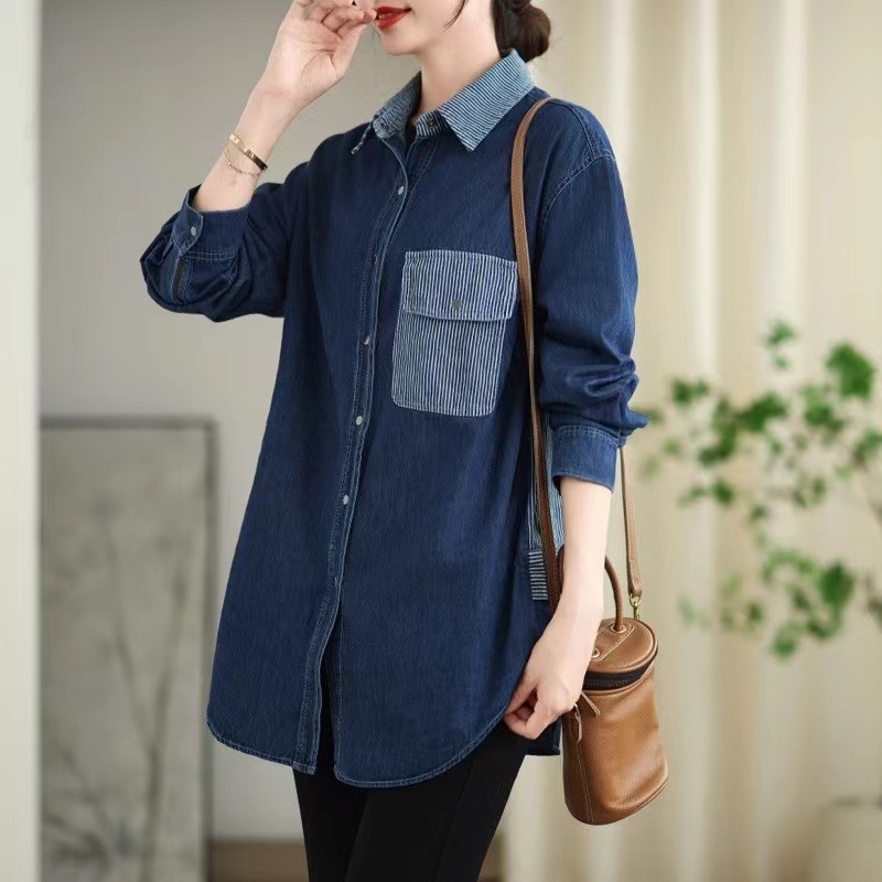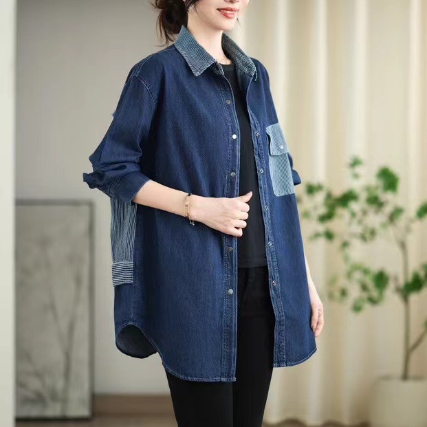 | nameOriginal | Simple Washed Old White Lapel Long-sleeved Shirt 2024 New Women's Spring and Autumn Loose Shirt Mid-length Jacket |