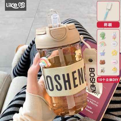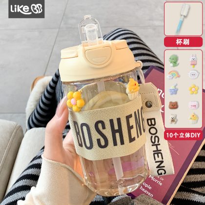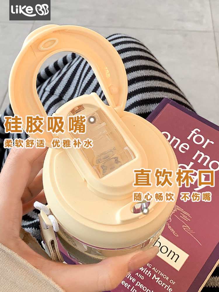 Simple Water Cup with Suction Tube Cup Children’s New 2024 High-value Office Women’s Portable Student Double Drinking Summer
