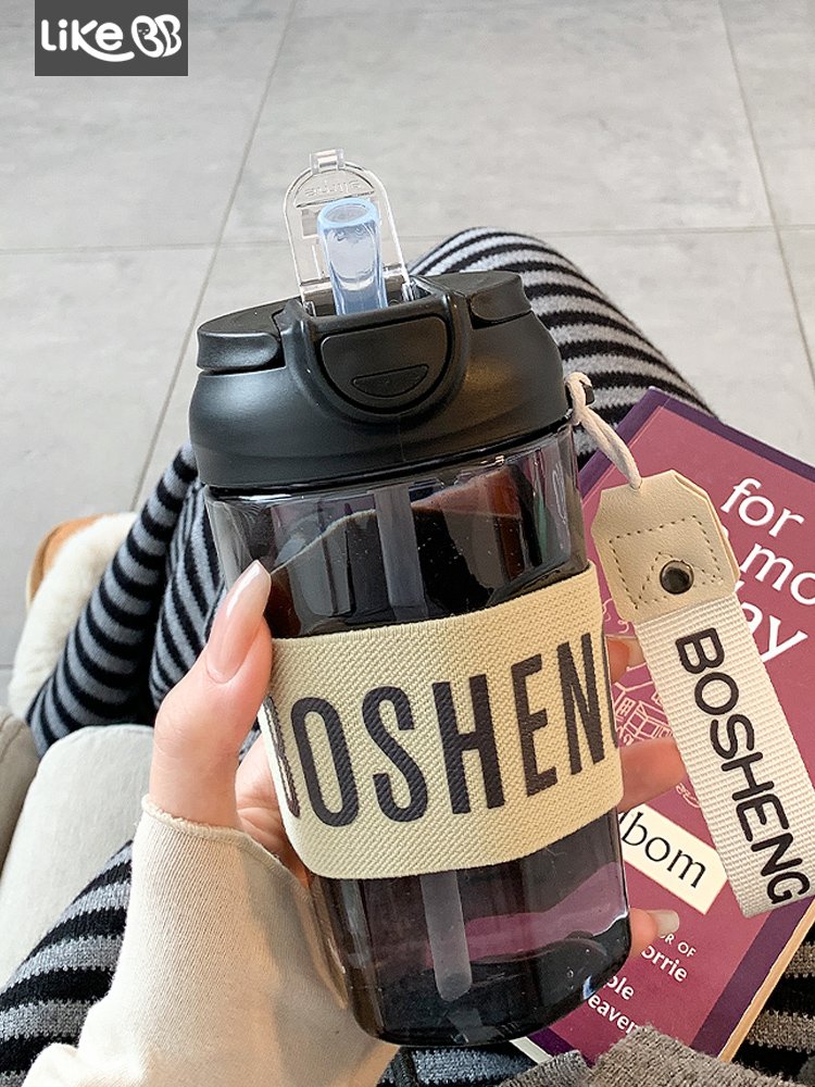 Simple Water Cup with Suction Tube Cup Children's New 2024 High-value Office Women's Portable Student Double Drinking Summer