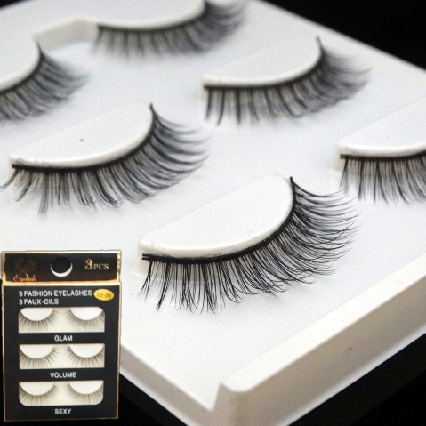 Simulated 3D three-dimensional multi-layered false eyelashes, naturally messy, Korean-style light makeup, bare makeup, hard stems, 3 pairs of eyelashes