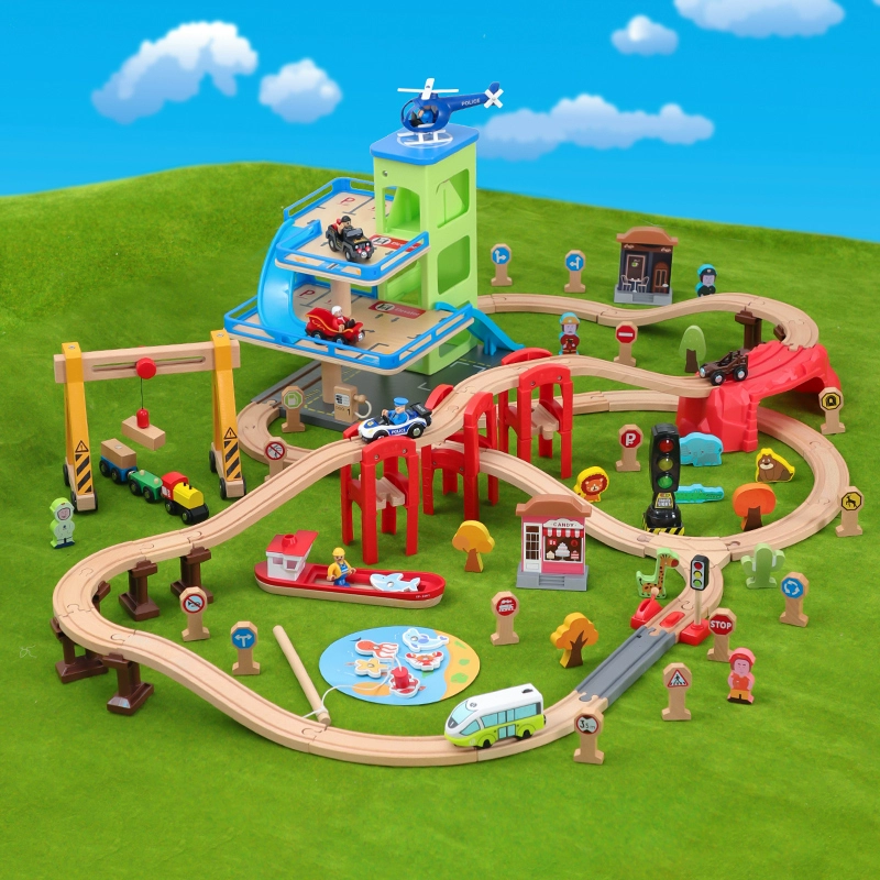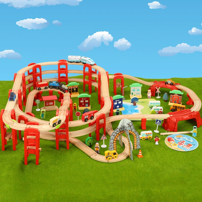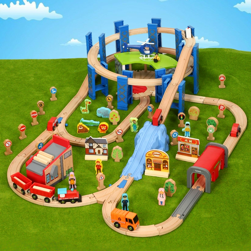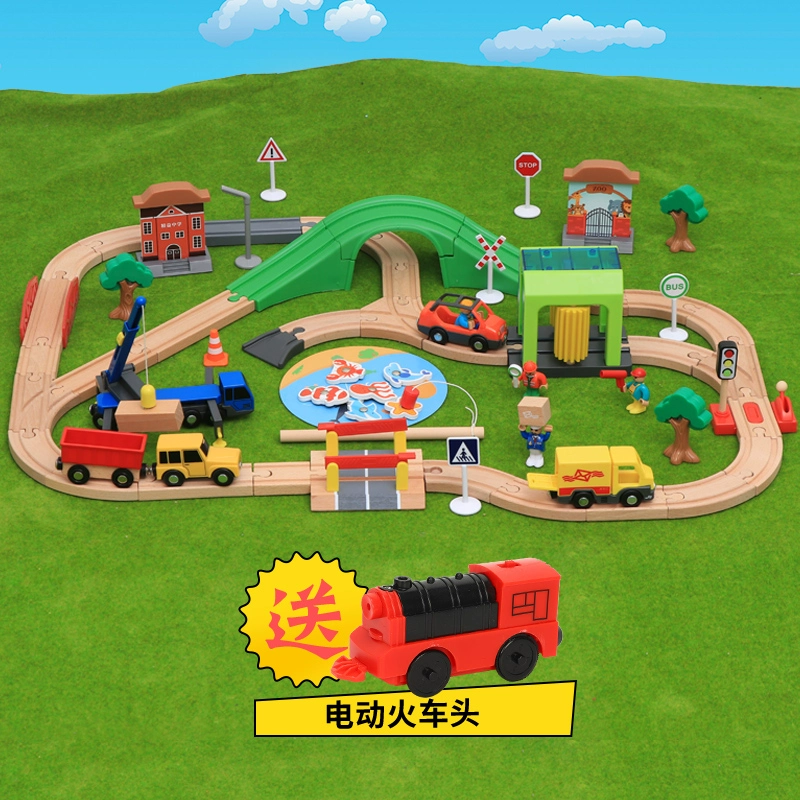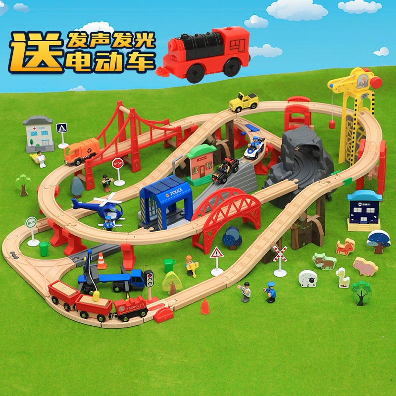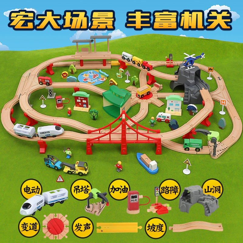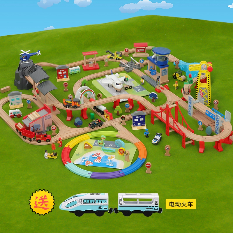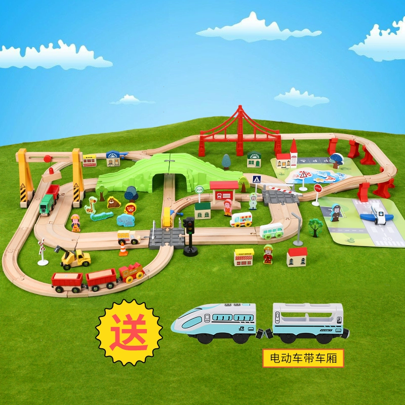 Simulated high-speed rail track toy electric train set wooden airplane model Harmony EMU compatible with BRIO