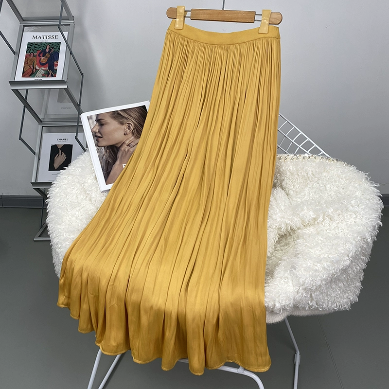 | nameOriginal | Simulated silk long hip-covering A-line skirt with elegant acetate |