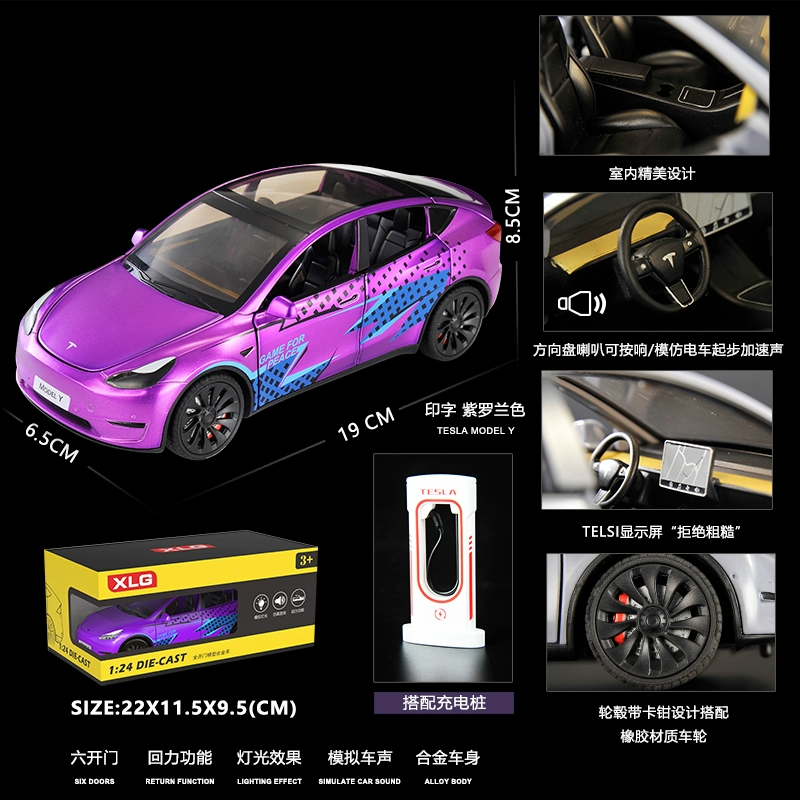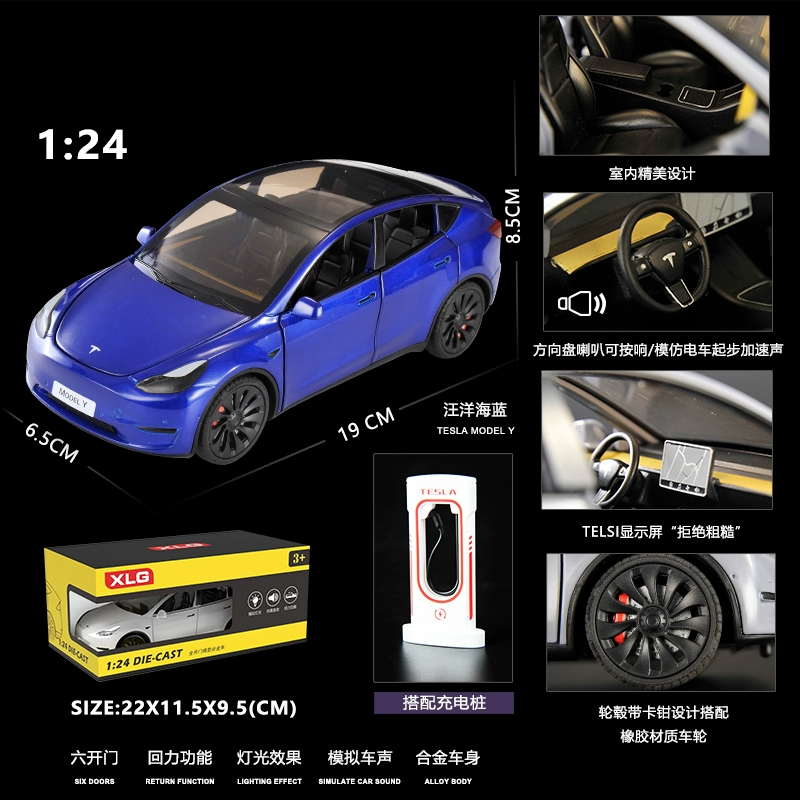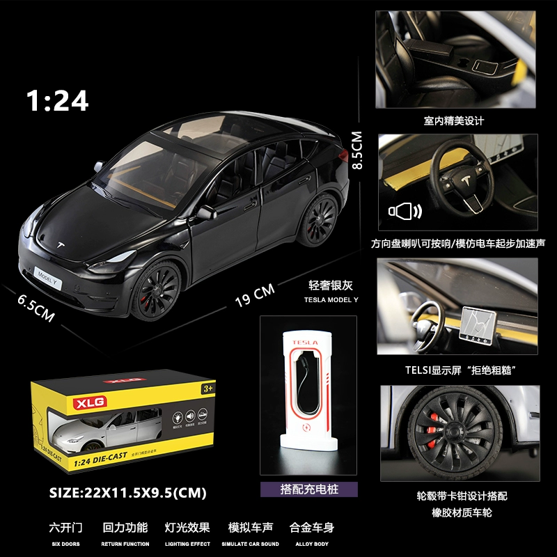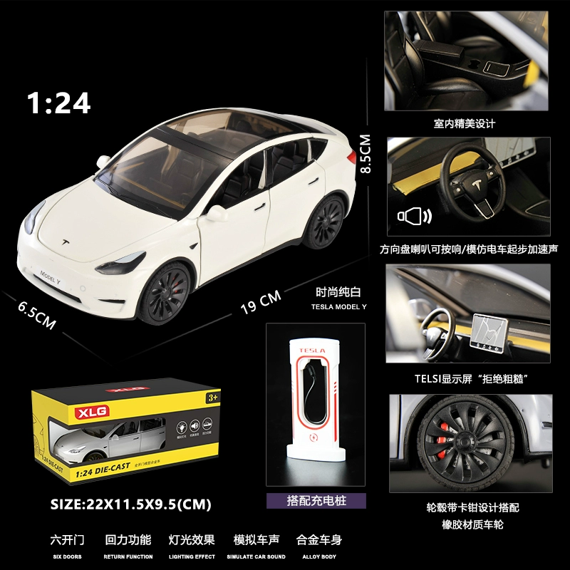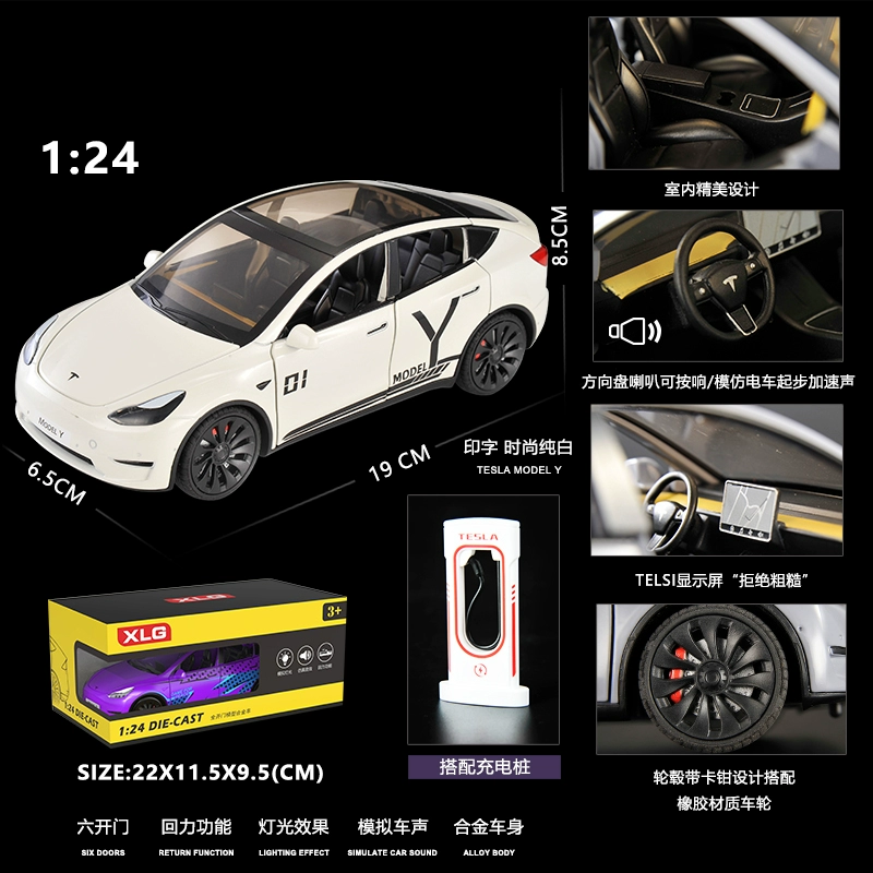 | nameOriginal | Simulation 1:24 Tesla MODE-Y new energy alloy car model sound and light pull-back door opening children's toy ornaments |