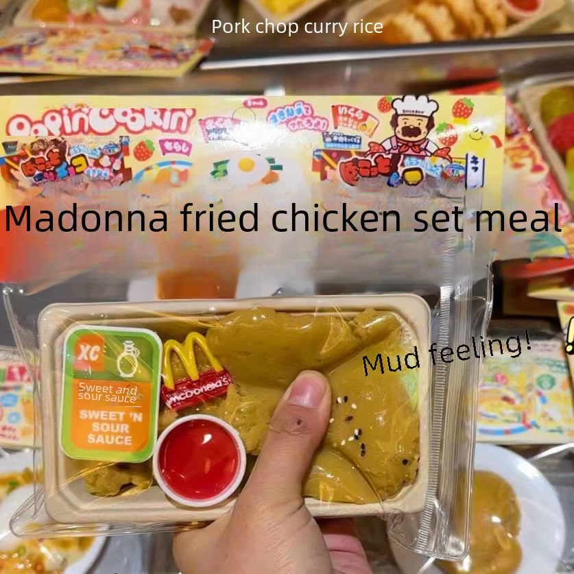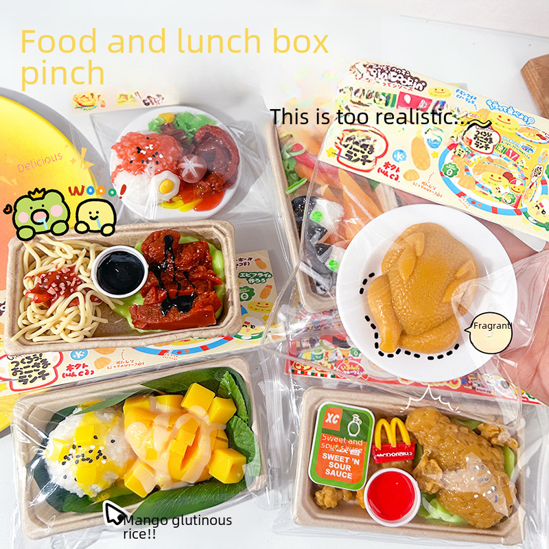 | nameOriginal | Simulation decompression food and play box lunch pinch play house small bowl dish student decompression little red book tpr cheap pinch music |