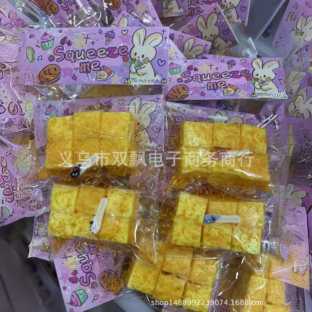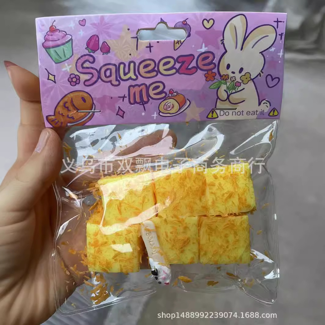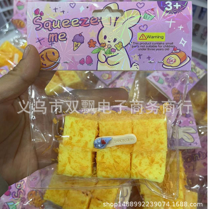 Simulation Food Play Fried Cheese Small Square Cake Cheese Cheese Cake Decompression Slow Rebound Fried Raspberry Tower Toy