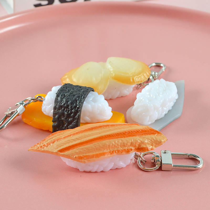 Simulation Japanese salmon small sushi keychain door buckle fun Japanese food and play model creative bag pendant